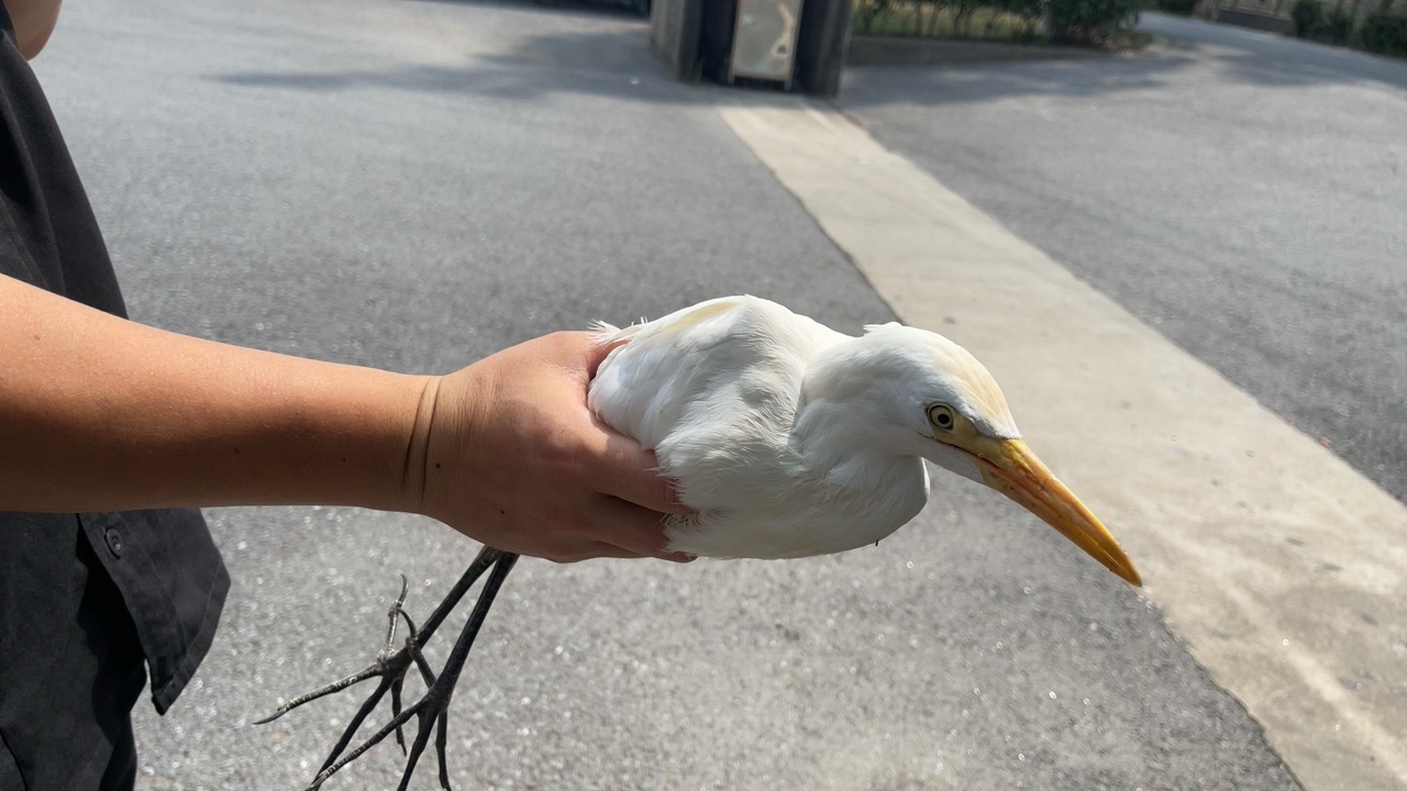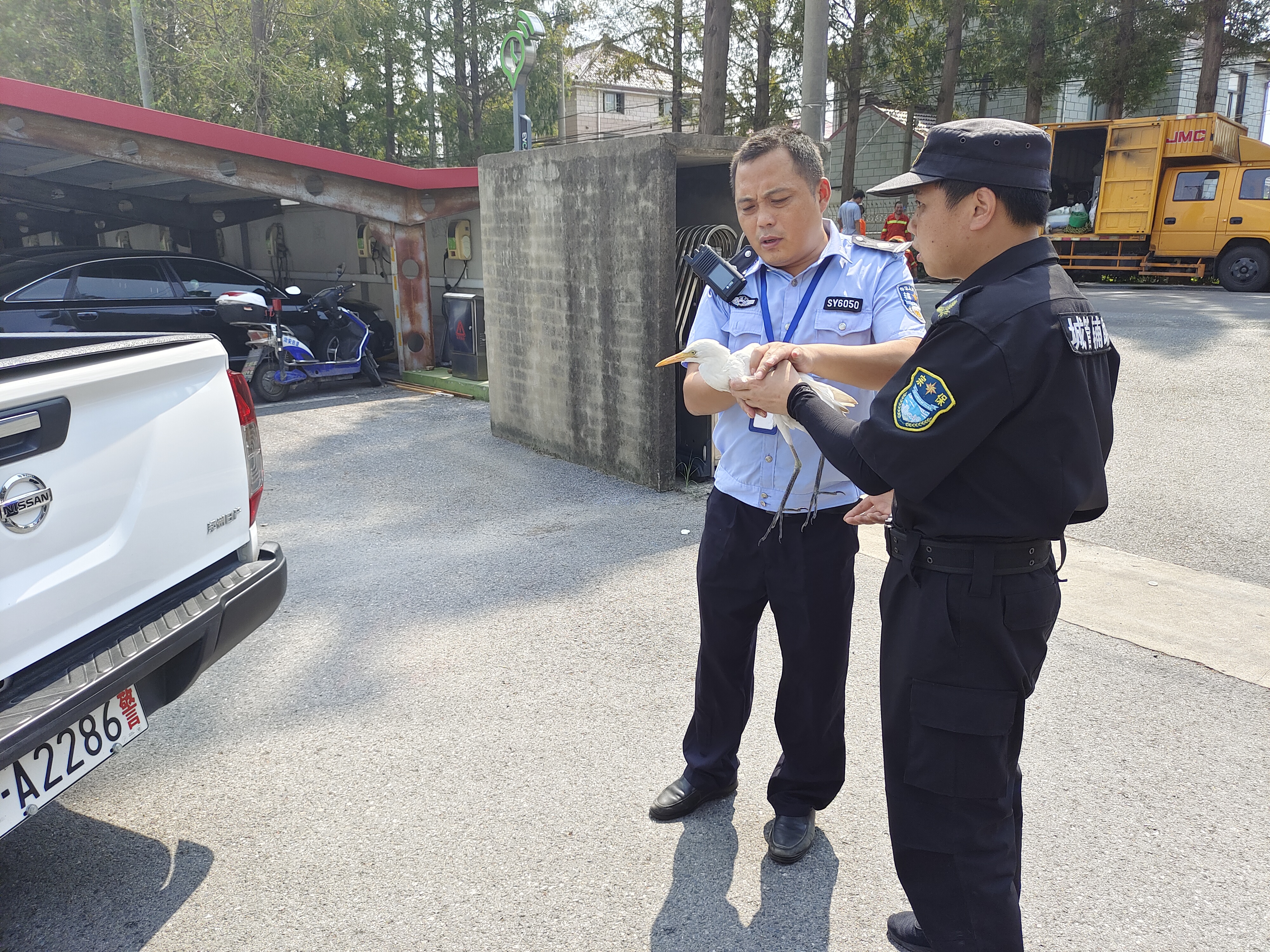 8月26日,宗保公司驻临港书院项目队员桂云救起一只国家二级保护动物——牛背鹭。