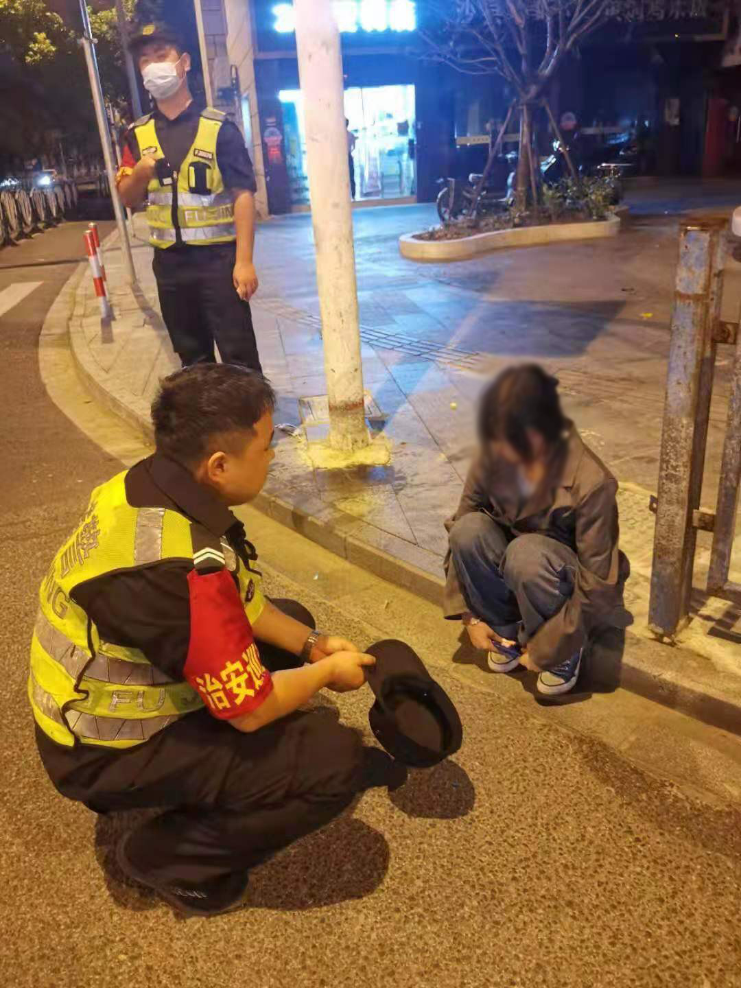 当天凌晨3:10左右,孙儒强、王甫川巡逻至年家浜路周康路路口时,发现一名大约20岁左右,上身穿浅色外套、下身穿蓝色牛仔裤的醉酒女子坐在马路边大哭,嘴里一直嚷嚷着,情绪十分激动。