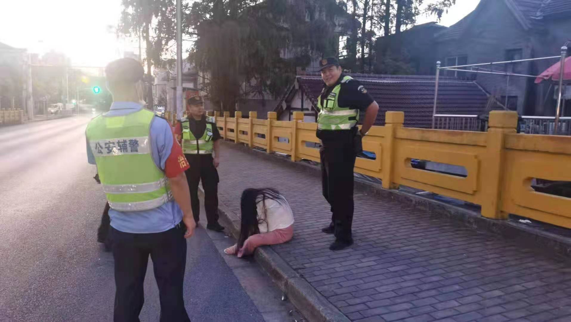 当天凌晨5:05,李武召、王楷迪、张永熠巡逻至周市路祝家港路祝家港桥时,发现一名大约20岁左右、身穿白色短袖、粉色裤子的醉酒女子坐在地上,一边打视频电话,一边大声哭叫,情绪显得非常激动。