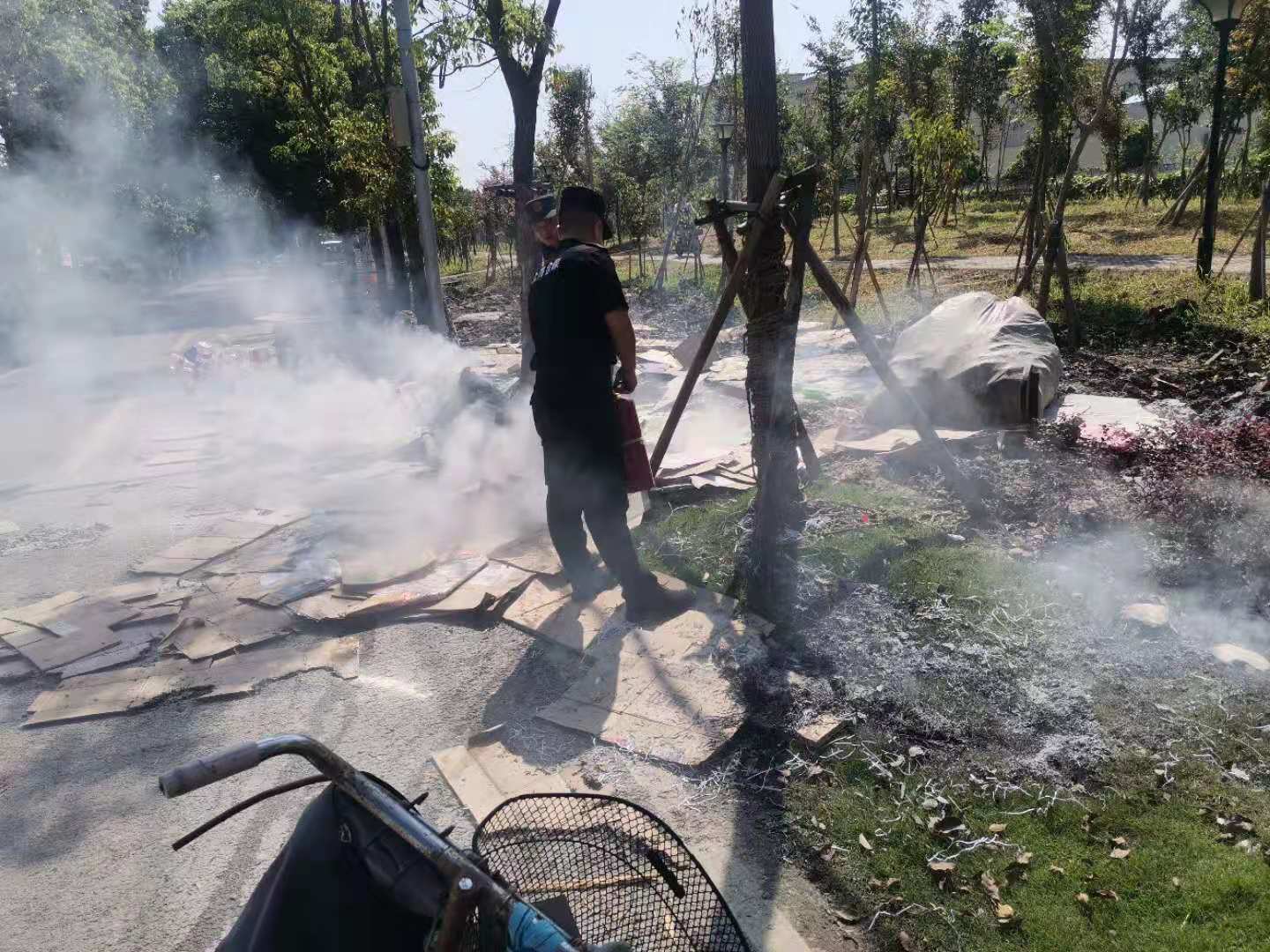 骑三轮车的师傅一再向队员表示感谢,并为自己拉着纸盒还吸烟、差点酿成大祸而自责。同时,队员也提醒三轮车师傅,废纸品特别容易起火燃烧,一定要有防火意识,避免意外的发生。