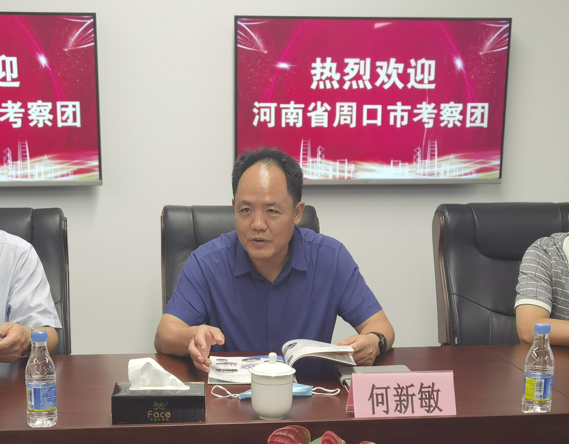 随后,双方进行了座谈交流。公司创始人冯中保代表公司对周口市考察团一行的到来表示热烈欢迎,向来宾介绍了公司基本情况、公司发展历程、公司未来展望,畅谈了“宗管佳科技公司”开展大众健康服务的设想。