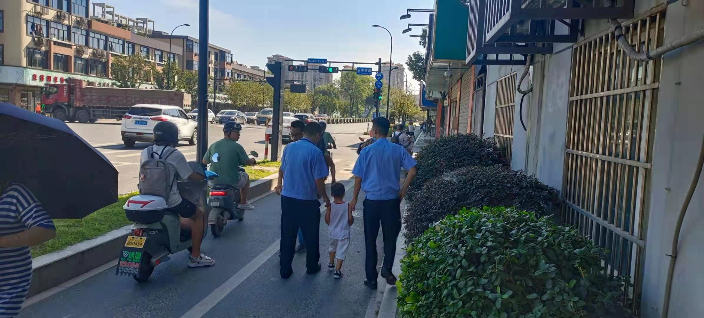 9月2日,宗保公司驻中泰交管辅助项目队员宋清华帮助走散男童寻找家人。
