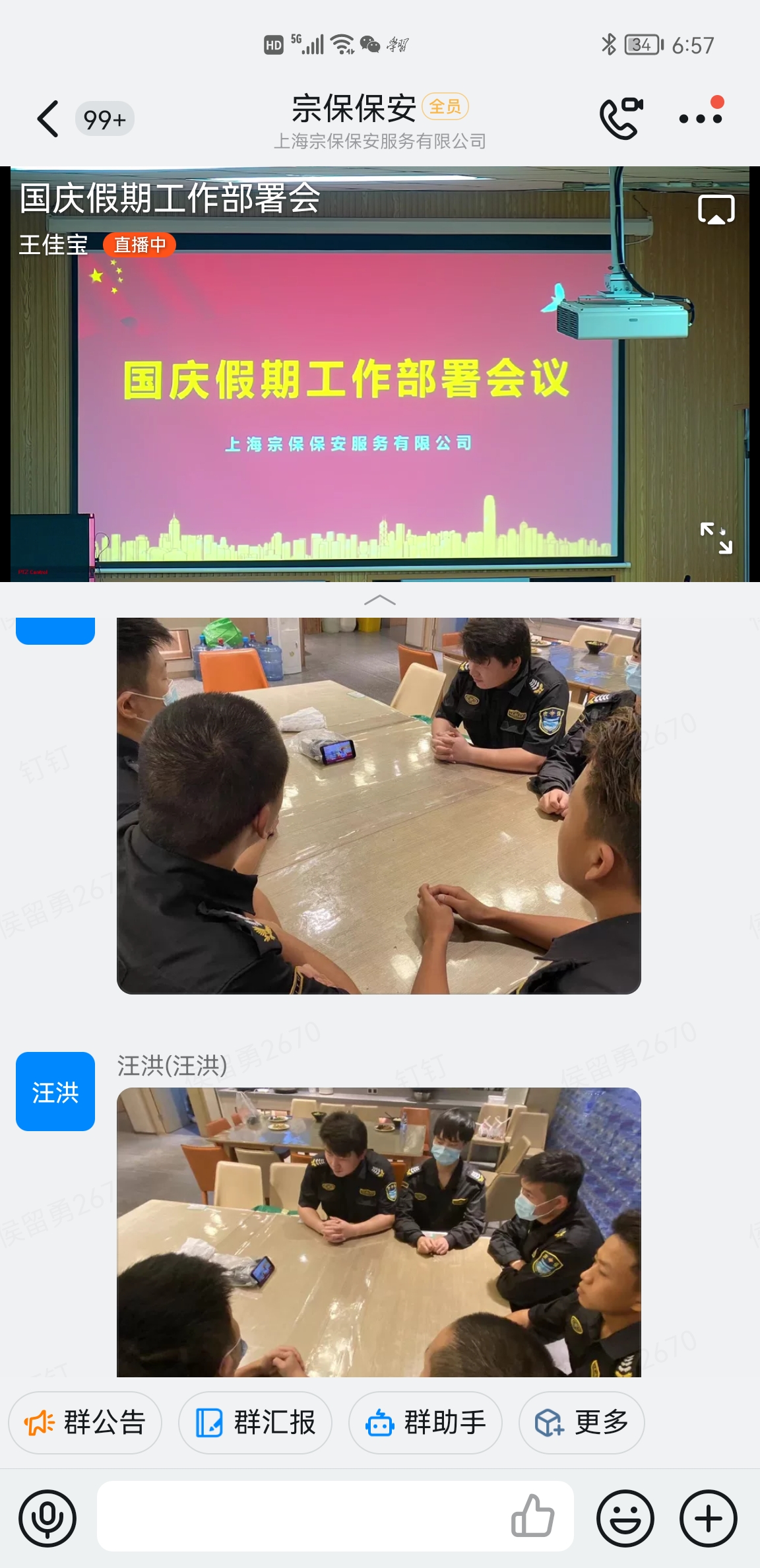9月29日晚,公司利用“钉钉”远程会议系统组织全体骨干召开国庆期间工作部署会。