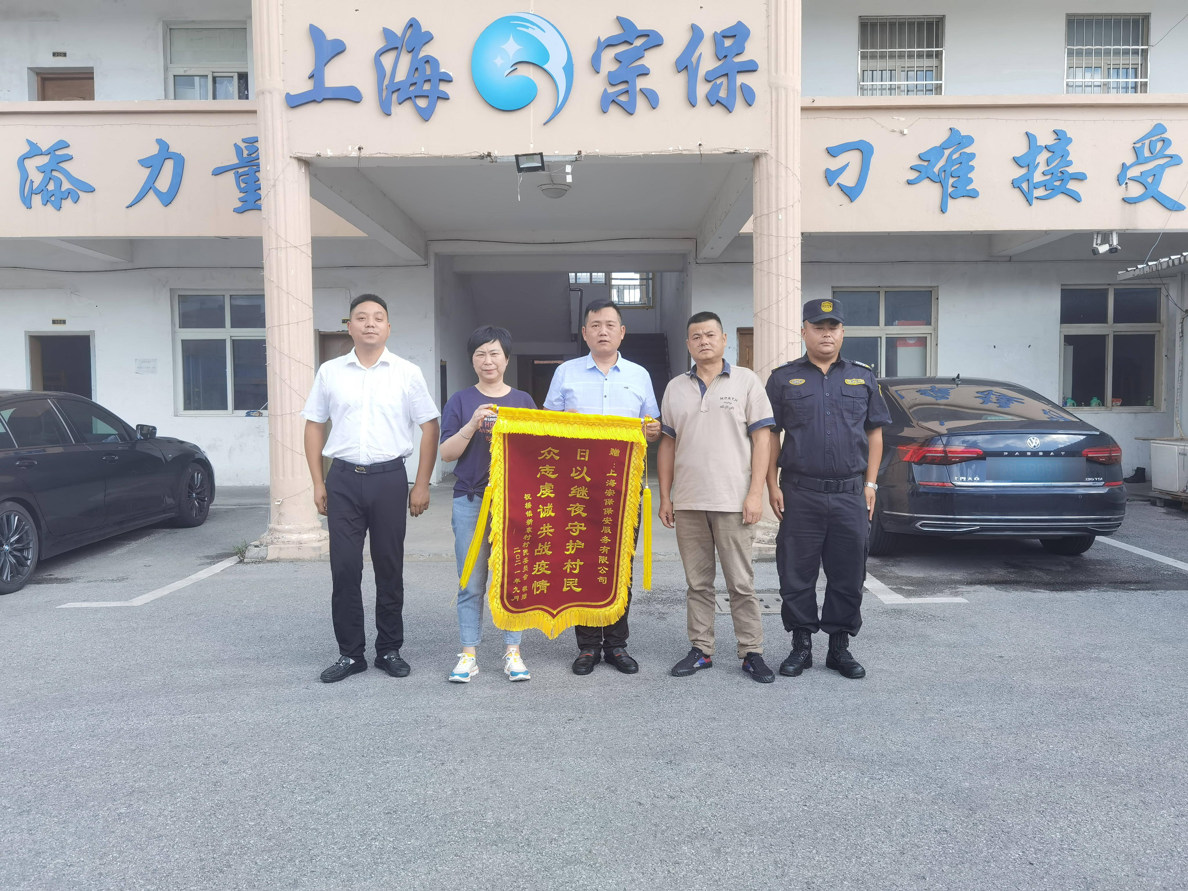 10月9日,宗保公司收到新东村村委会送来的一面绣有“日以继夜守护村民 众志虔诚共战疫情”的锦旗,感谢宗保公司队员的用心服务和辛勤付出。