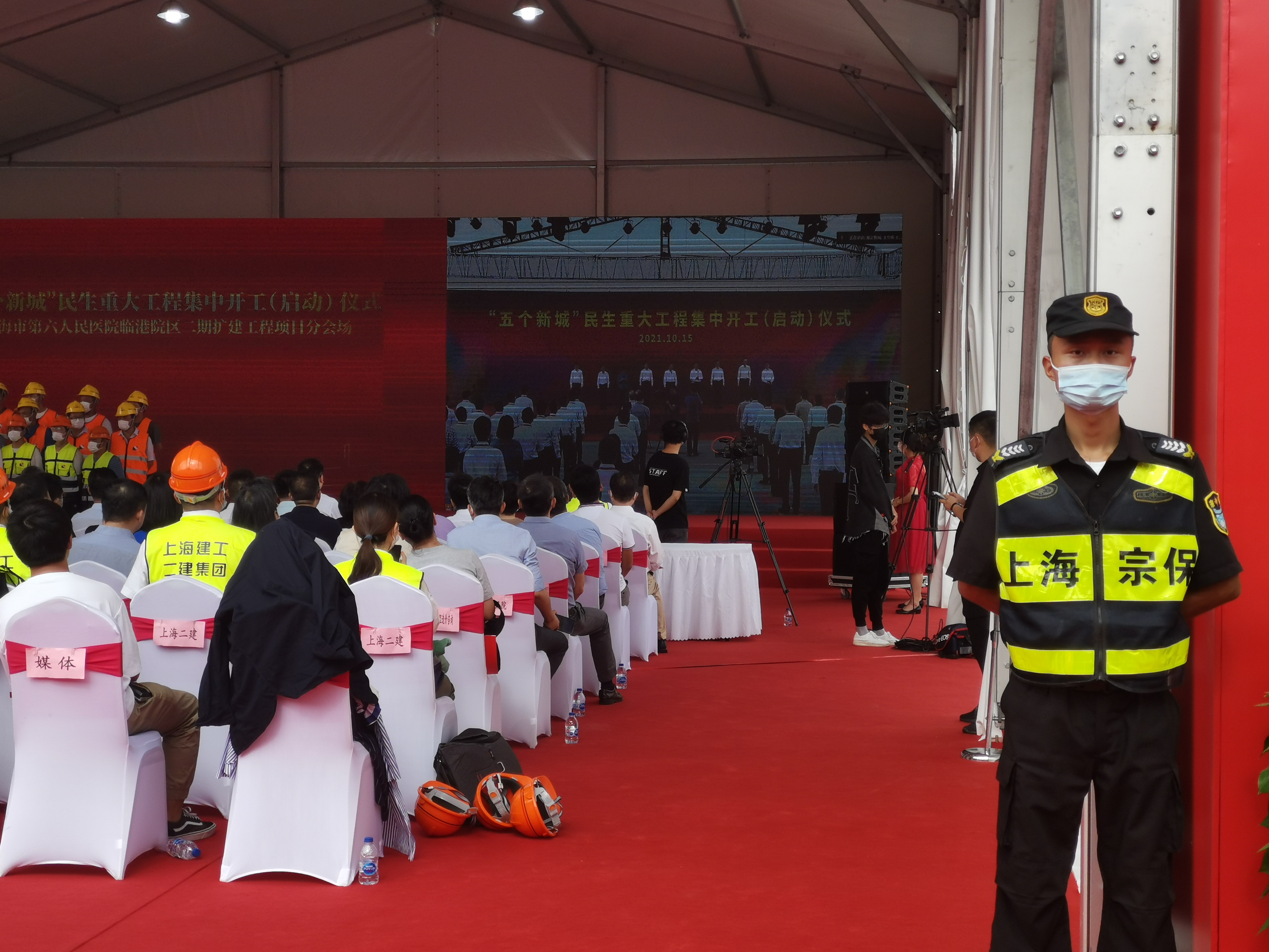 10月15日,上海市“五个新城”民生重大工程集中开工暨第六人民医院临港院区二期扩建工程开工仪式在六院院区举行,宗保公司承担此次开工仪式安保秩序维护任务。