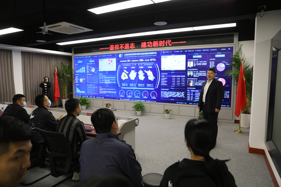 培训班学员一行首先来到公司运营指挥中心,观看公司《退役不退志 建功新时代》拥军宣传片,了解公司退役军人创业就业、员工队伍管理、参加公益活动等情况;参观公司文体室、员工宿舍、培训场地等,了解公司业务发展、员工生活、学习培训情况。