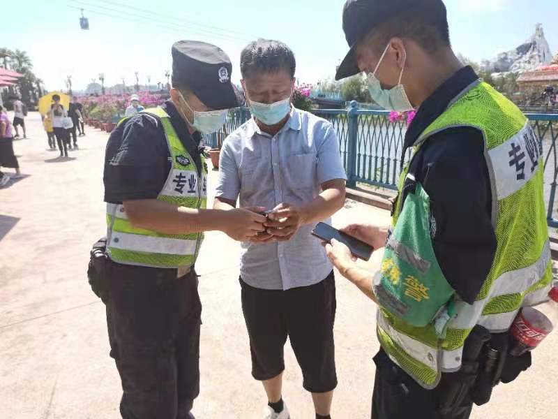 当天12:40,王佳豪、陈佳结在海昌海洋公园巡逻时,捡到一部价值约2000元的OPPO手机。因手机设置锁屏密码,无法获取失主联系方式,两人便一边巡逻,一边等待失主前来寻找。