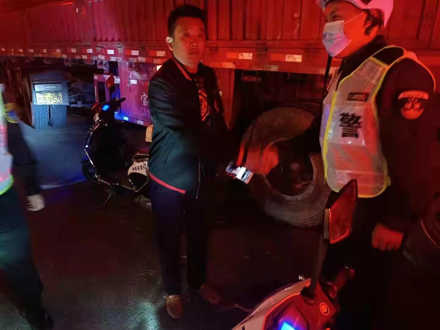 失主拿着手机,再三向队员孙小雷道谢。