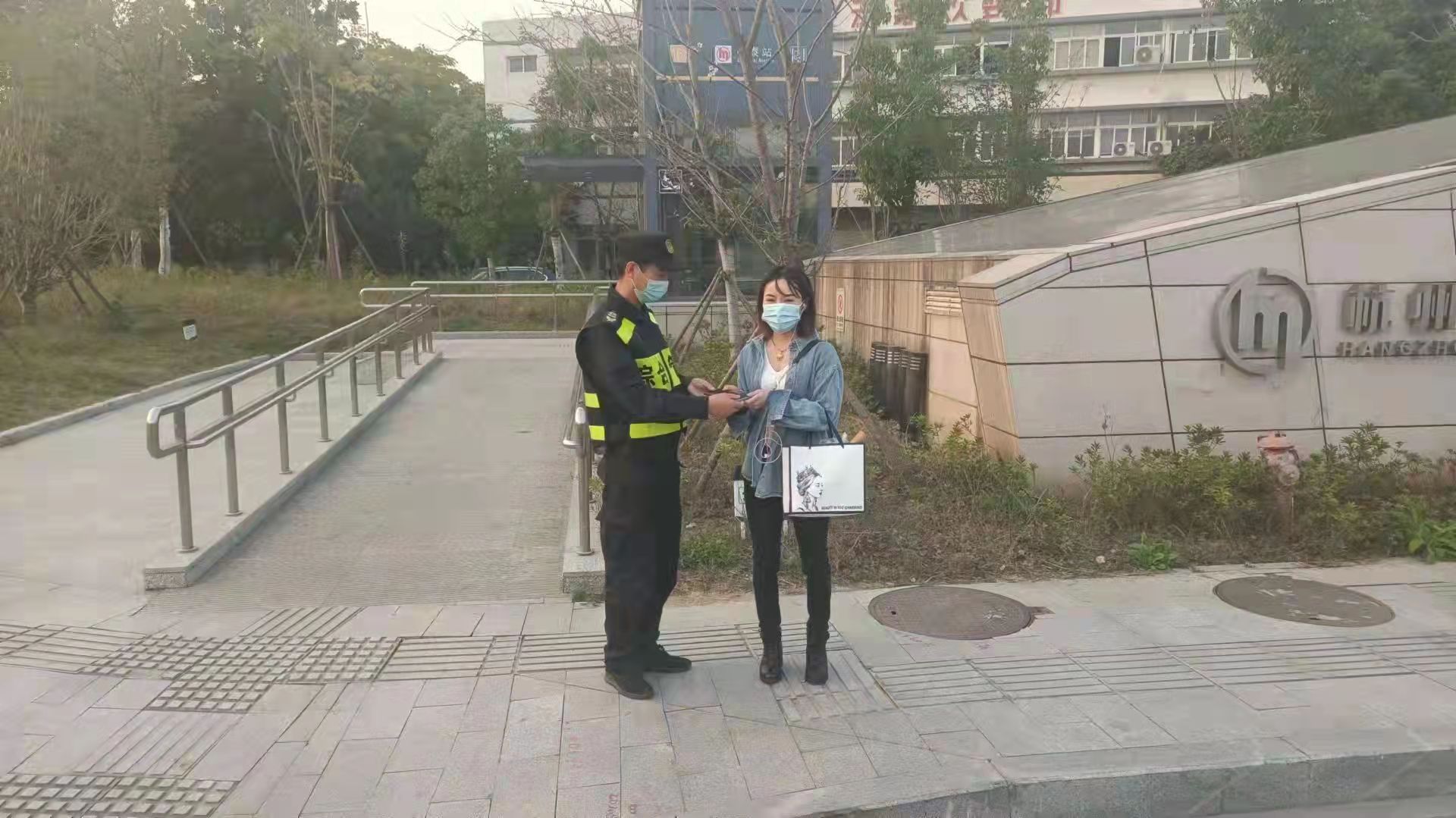 为表示感谢,阿姨特意到旁边超市买了一包香烟,硬要塞给唐洪生,唐洪生婉拒了阿姨的好意,随后返回工作岗位继续值勤。