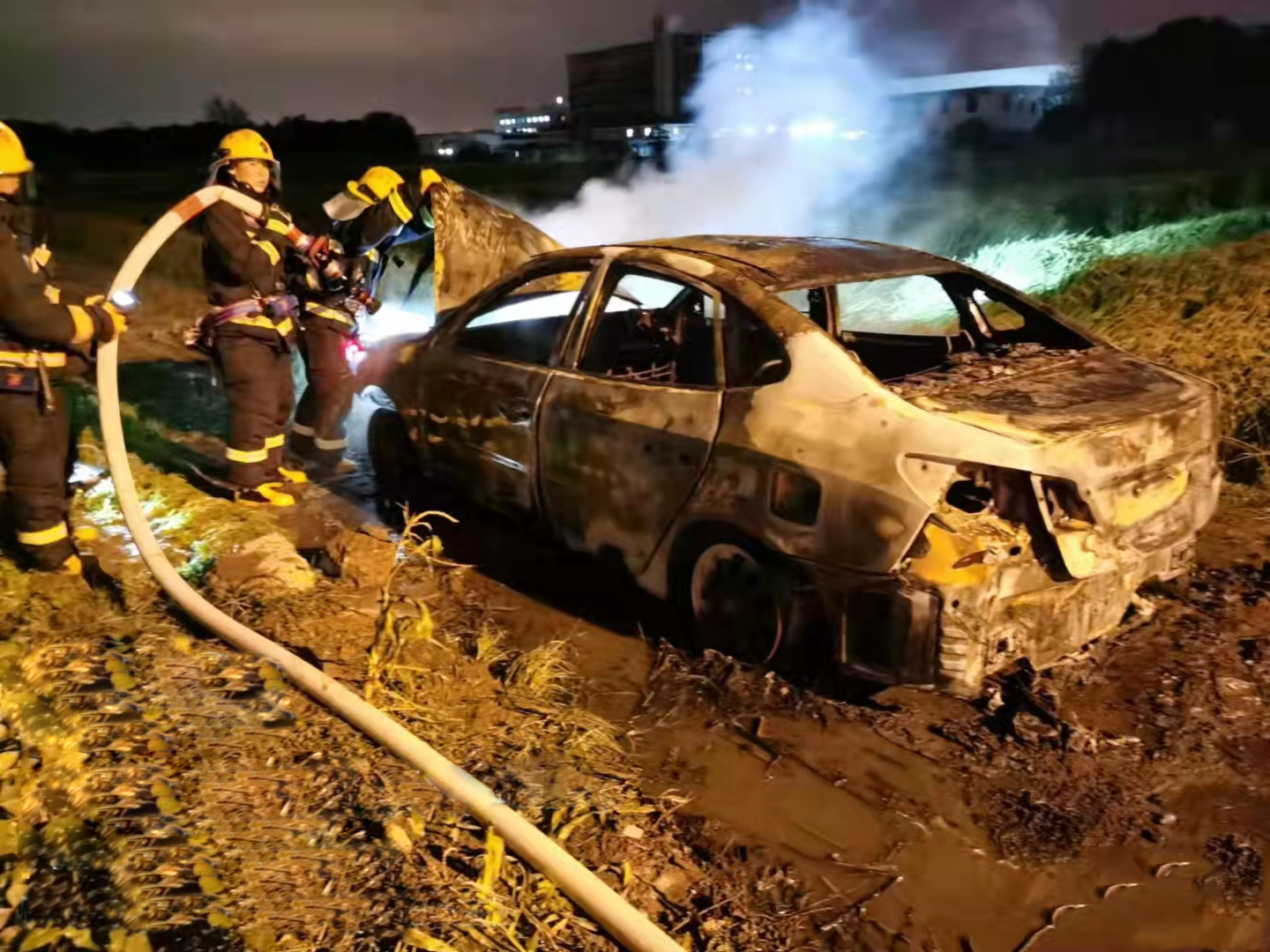 很快,应急救援人员和民警赶到现场,宗保队员协助其一道立即开始灭火。在大家共同努力下,起火小轿车的火被扑灭,没有造成严重的后果。