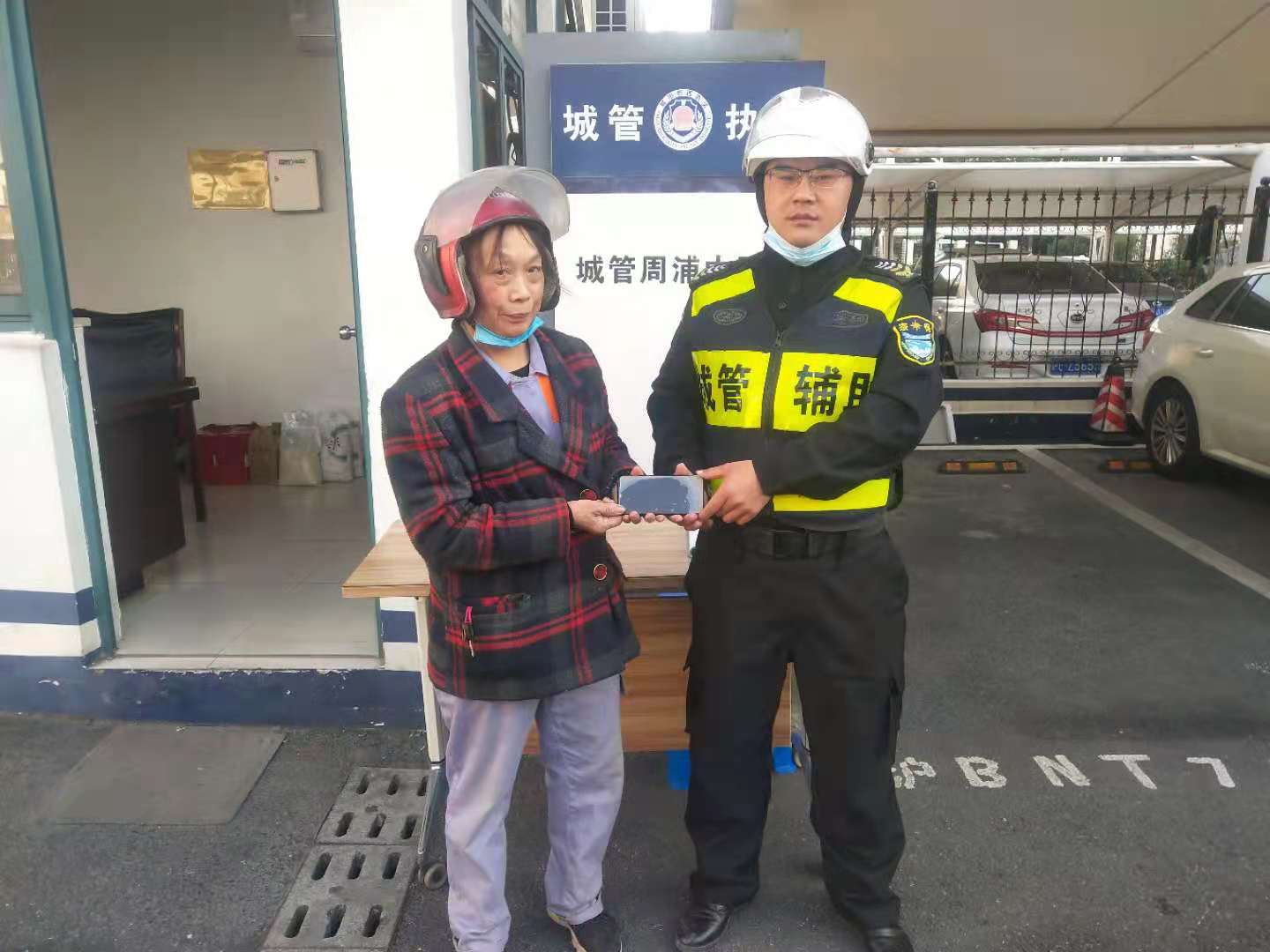 巡逻途中捡手机 归还失主获点赞—周浦市容项目队员捡到手机