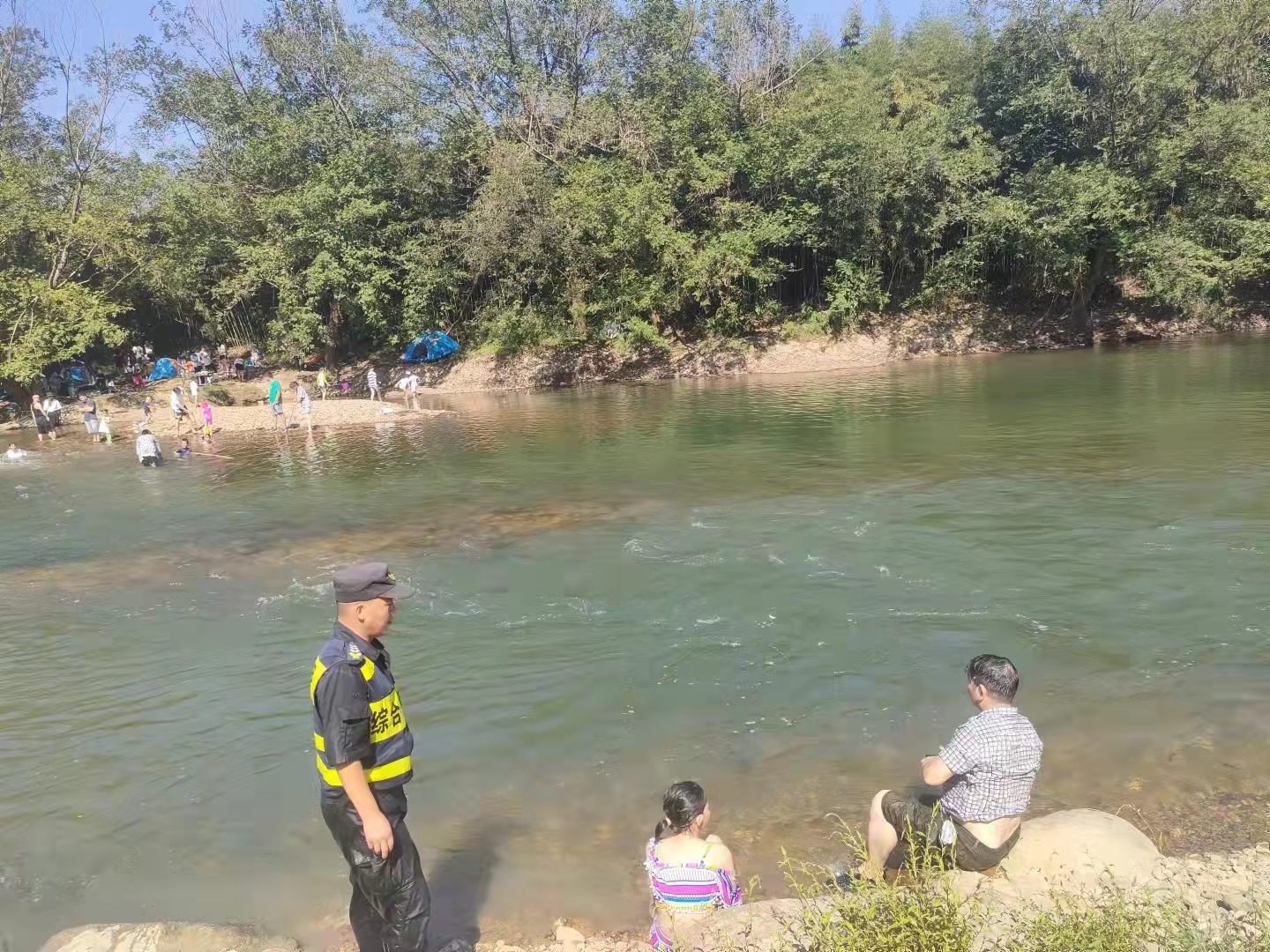 10月4日,张腾配合城管中队在径山双溪漂流旅游景点进行安全保障期间,发现一名在水中耍水的小女孩,快要游到深水漩涡区时,立即大喊呼叫提醒。