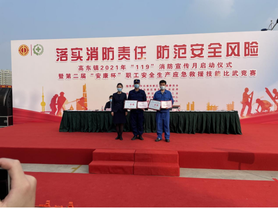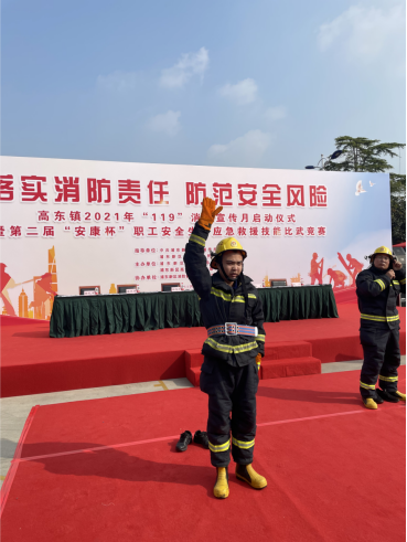 高东微型消防站的队员们参加高东镇2021年“119”消防宣传月启动仪式暨第二届“安康杯”职工安全生产应急救援技能比武竞赛,取得了二等奖的好成绩。