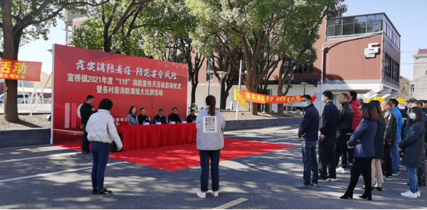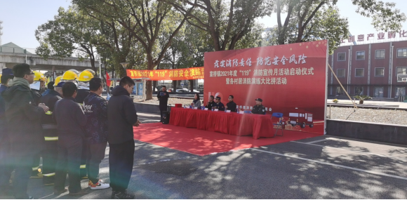 宣桥镇微型消防站队员们参加宣桥镇2021年“119”消防宣传月启动仪式暨各村居消防演练大比拼活动。