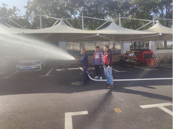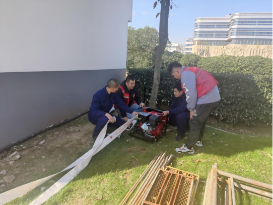 张江镇微型消防站队员们开展实战练兵,进行水枪操作演练,进一步提升自身消防应急处置技能。