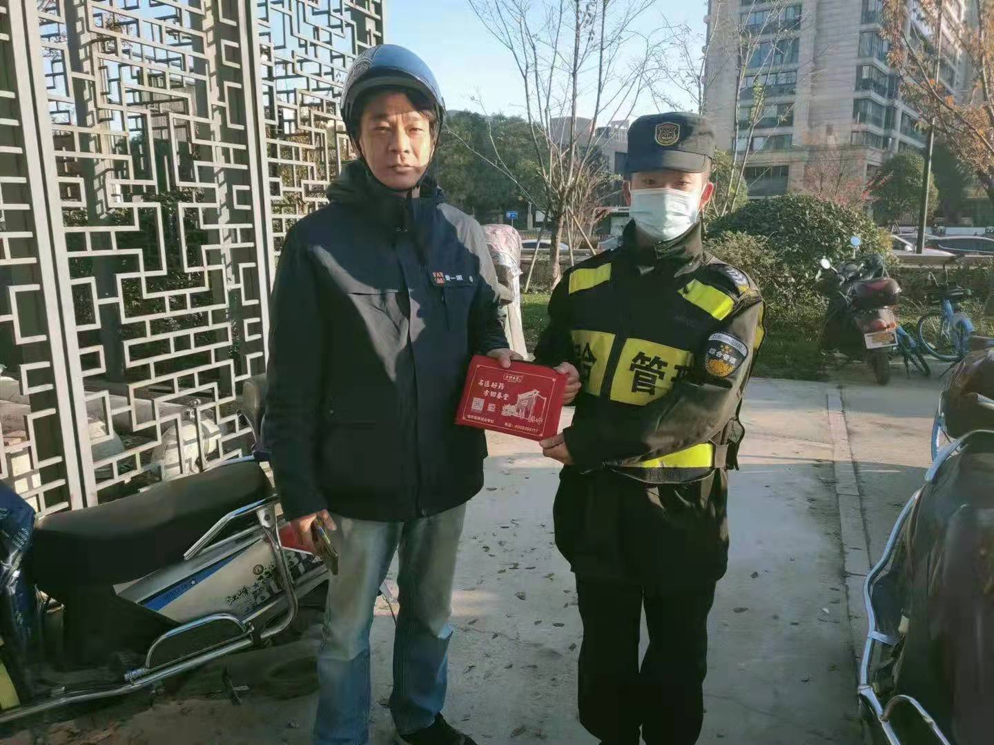 12月2日,宗保公司驻良渚地铁菜场项目队员捡到小包归还失主,受到感谢。