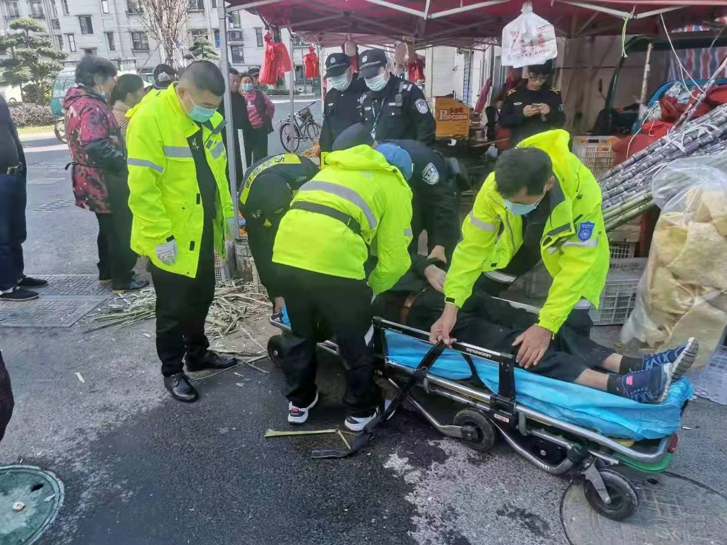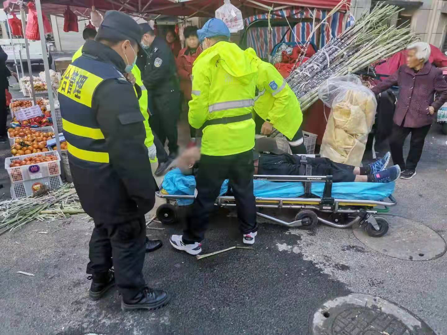 当日13:00左右,杨航在塘栖菜市场巡逻时,发现菜场西门水果摊旁边有一名男子躺在地上,便立即上前查看。男子面色苍白,浑身颤抖,尝试着与他说话时,男子没有回应。