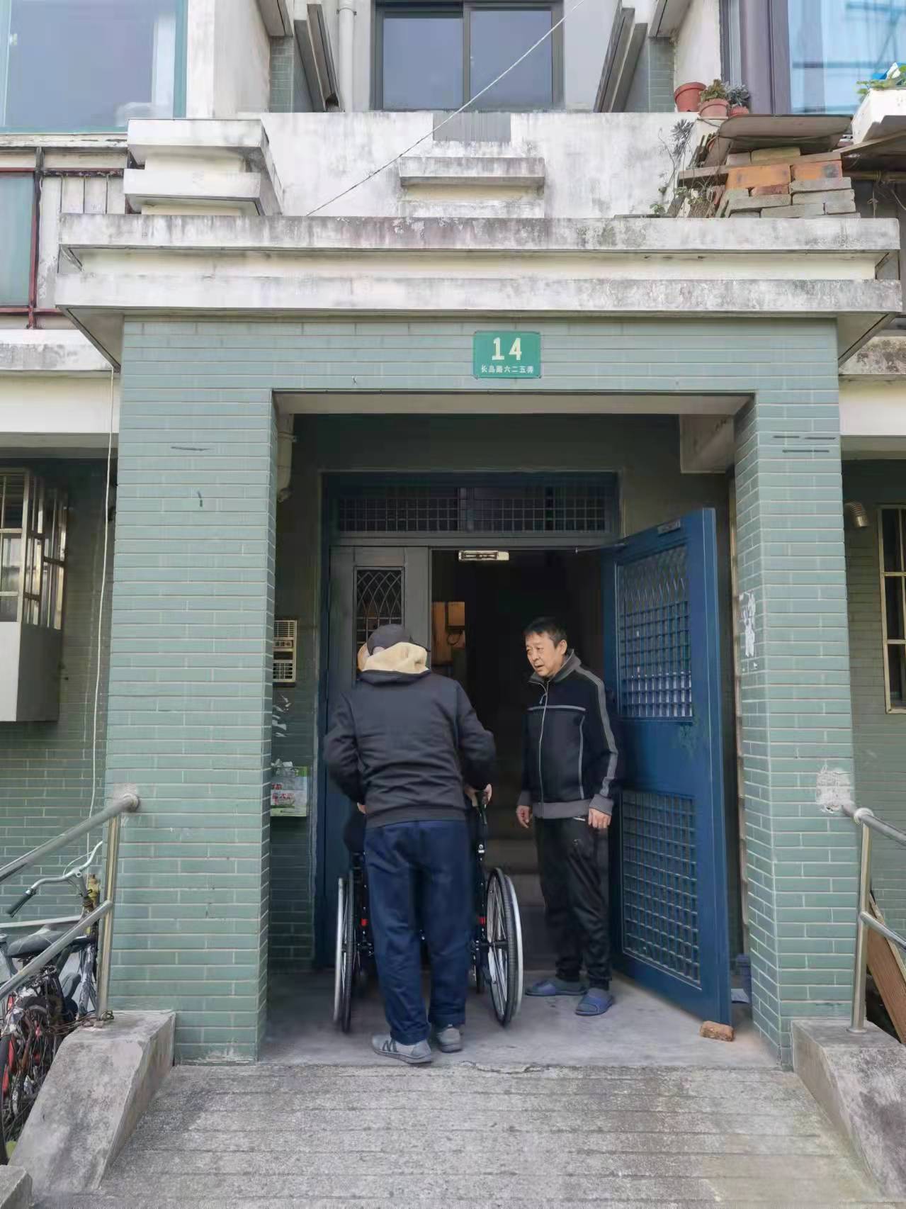 范大才了解情况后,二话没说,随即向项目负责人报告情况,急忙跟随阿姨到其家里。因楼道过于狭窄,再加上于阿姨夫妇患有腰间盘突出,无法帮忙搭手,范大才只能一个人背着老人下楼。