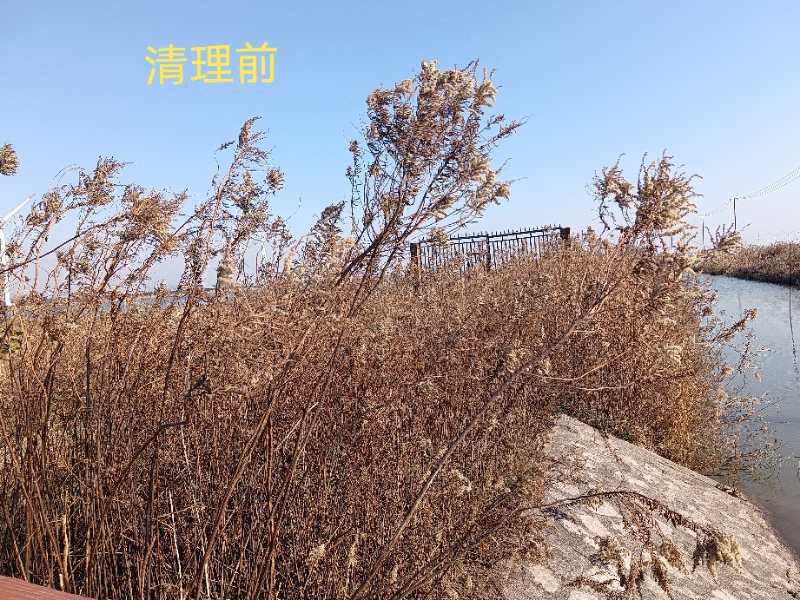 该物种长势茂密,根系发达,清除难度大,队员们克服待开发区风大、天冷等不利影响,采用人工拔、铁锹铲、割草机割的方法进行清理。3天时间里,3500多米范围内的“加拿大一枝黄花”被清除,为保护崇明北湖生态环境安全作出了积极努力。