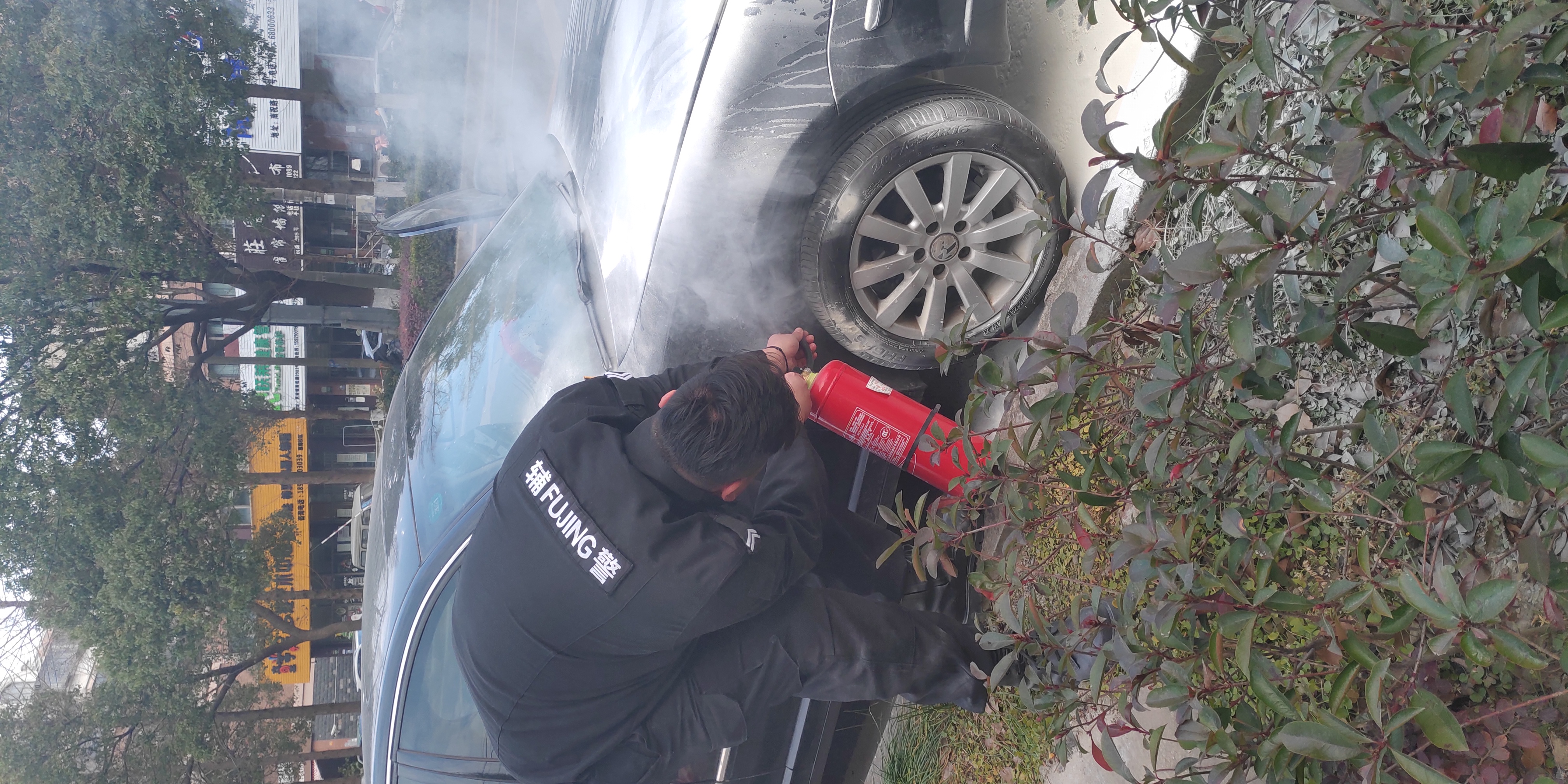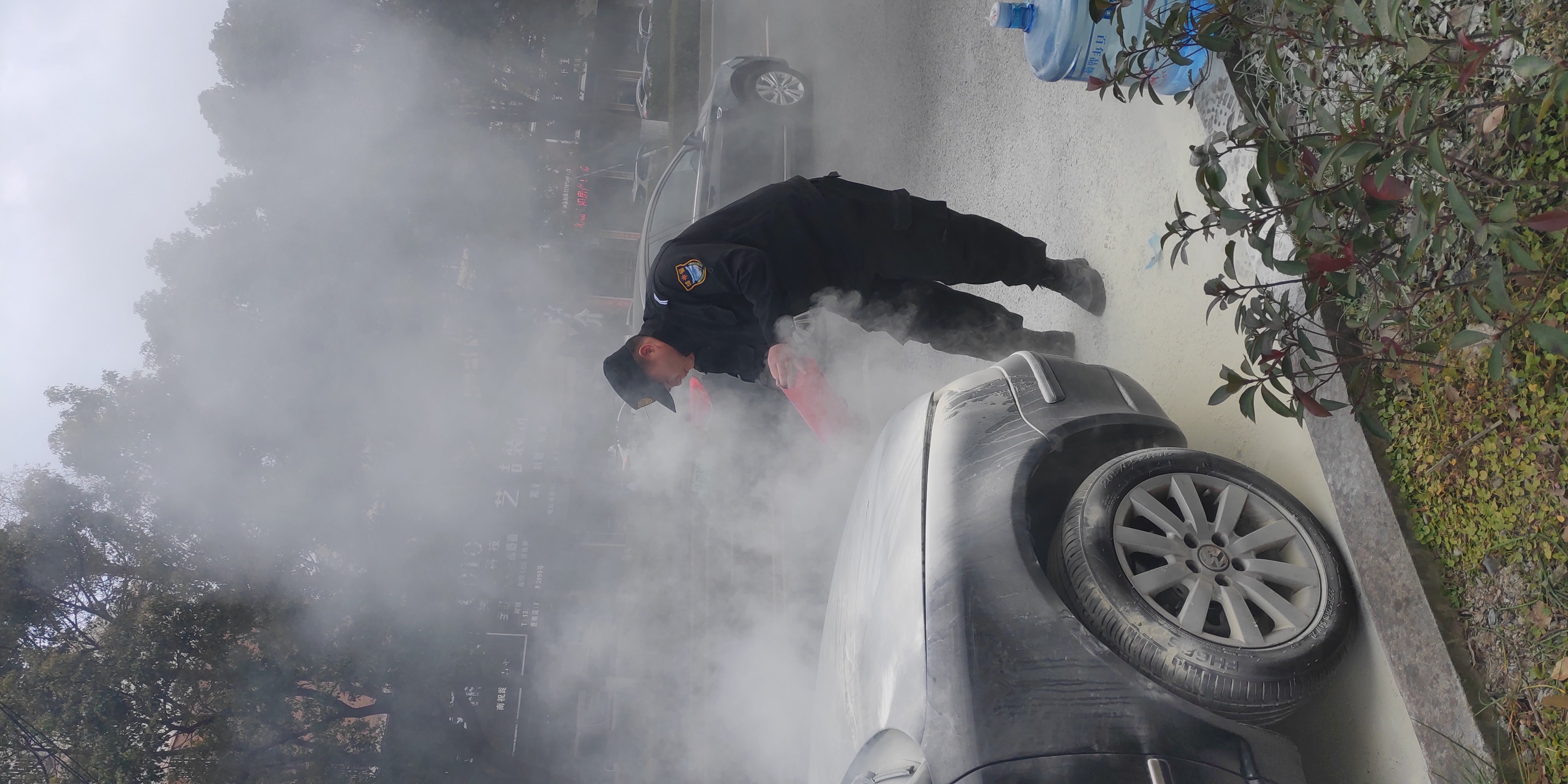 1月4日,宗保公司驻惠南辅警项目队员朱亚利和张喜帮助扑灭自燃车辆。