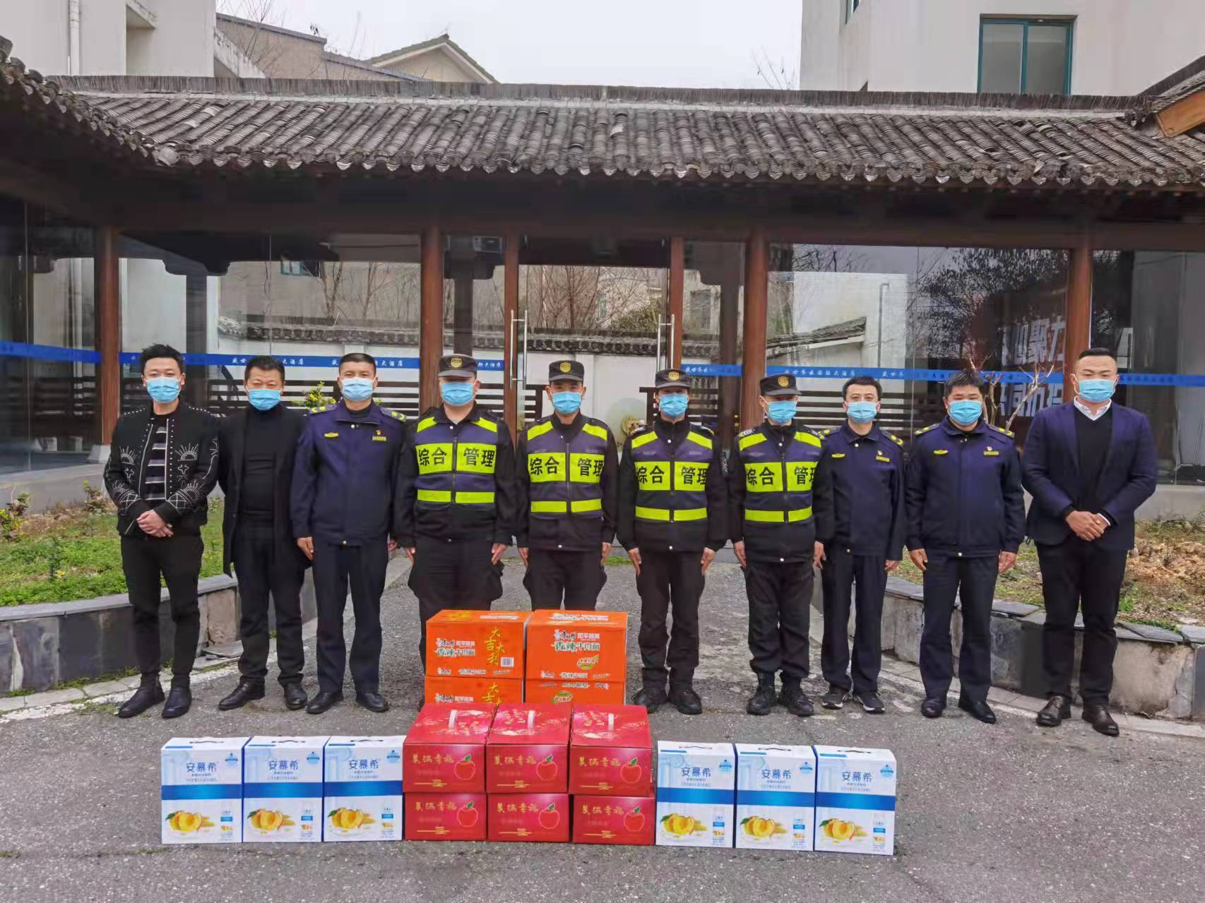 1月21日,黄山市高新区城市管理行政执法局局长刘岗代表高新区管委会,到隔离点慰问春节期间坚守岗位的宗保队员,向他们致以新春的祝福和亲切的问候。