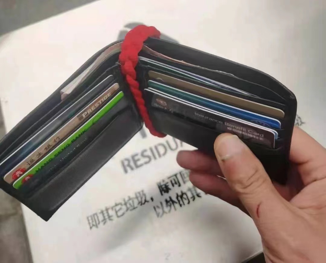 当日9:50,杨松淼在杨思路灵岩南路路口附近巡逻时,捡到一个钱包,发现内有400元现金、4张银行卡和1张医保卡,便按流程将情况上报项目负责人,并按照指示在原地等待。