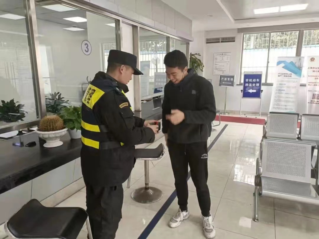 2月22日,宗保公司驻三林市容项目队员杨松淼捡到钱包上交值班民警,帮寻失主。