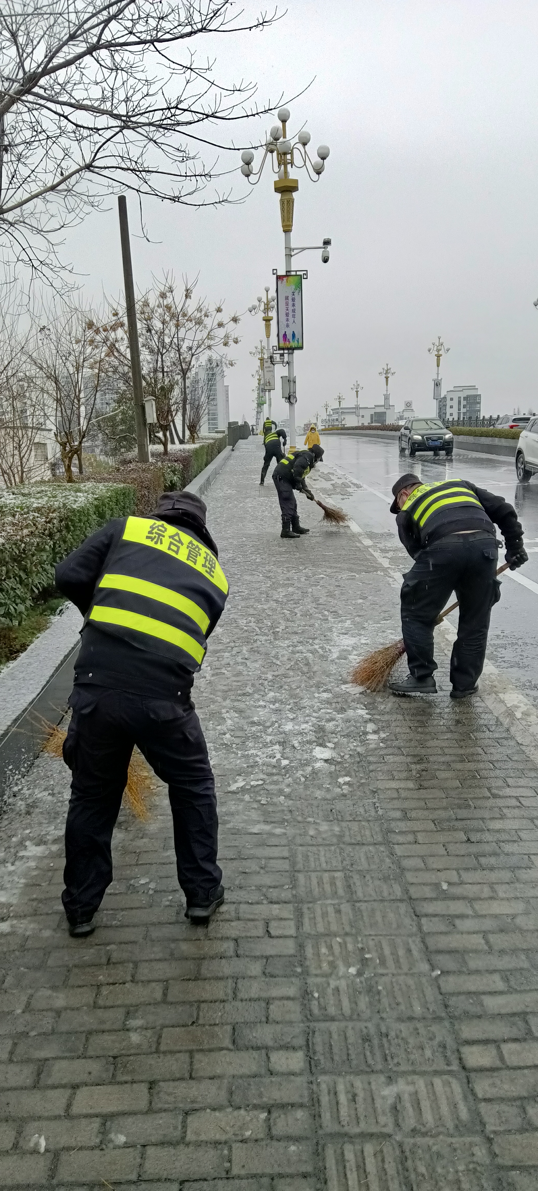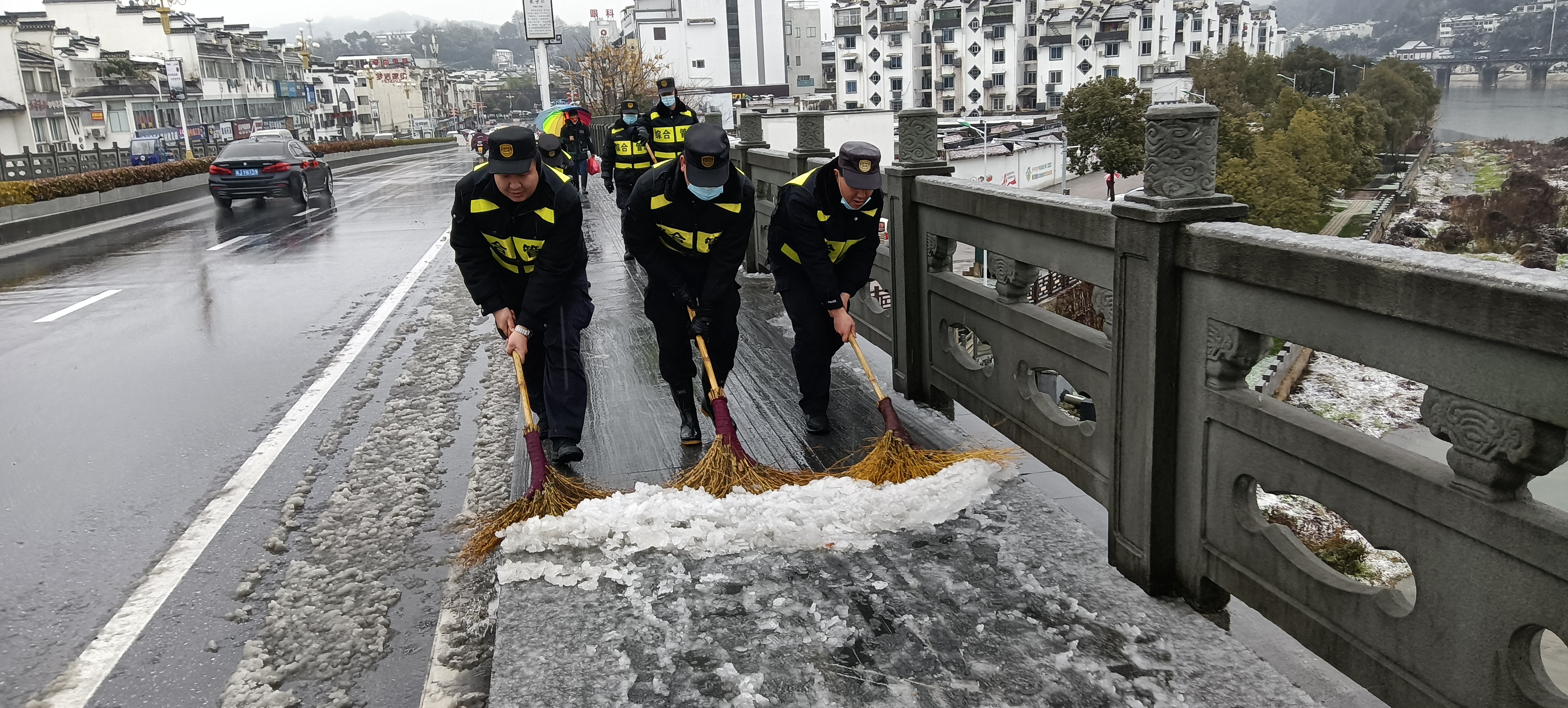 2022年2月7日,歙县迎来大雪,路面迅速积雪,白茫茫一片。雪情就是命令,公司驻歙县市容项目在县城管执法局的带领下,闻令而动,全力协助做好除雪融冰清扫等工作,保障了市民的出行安全。