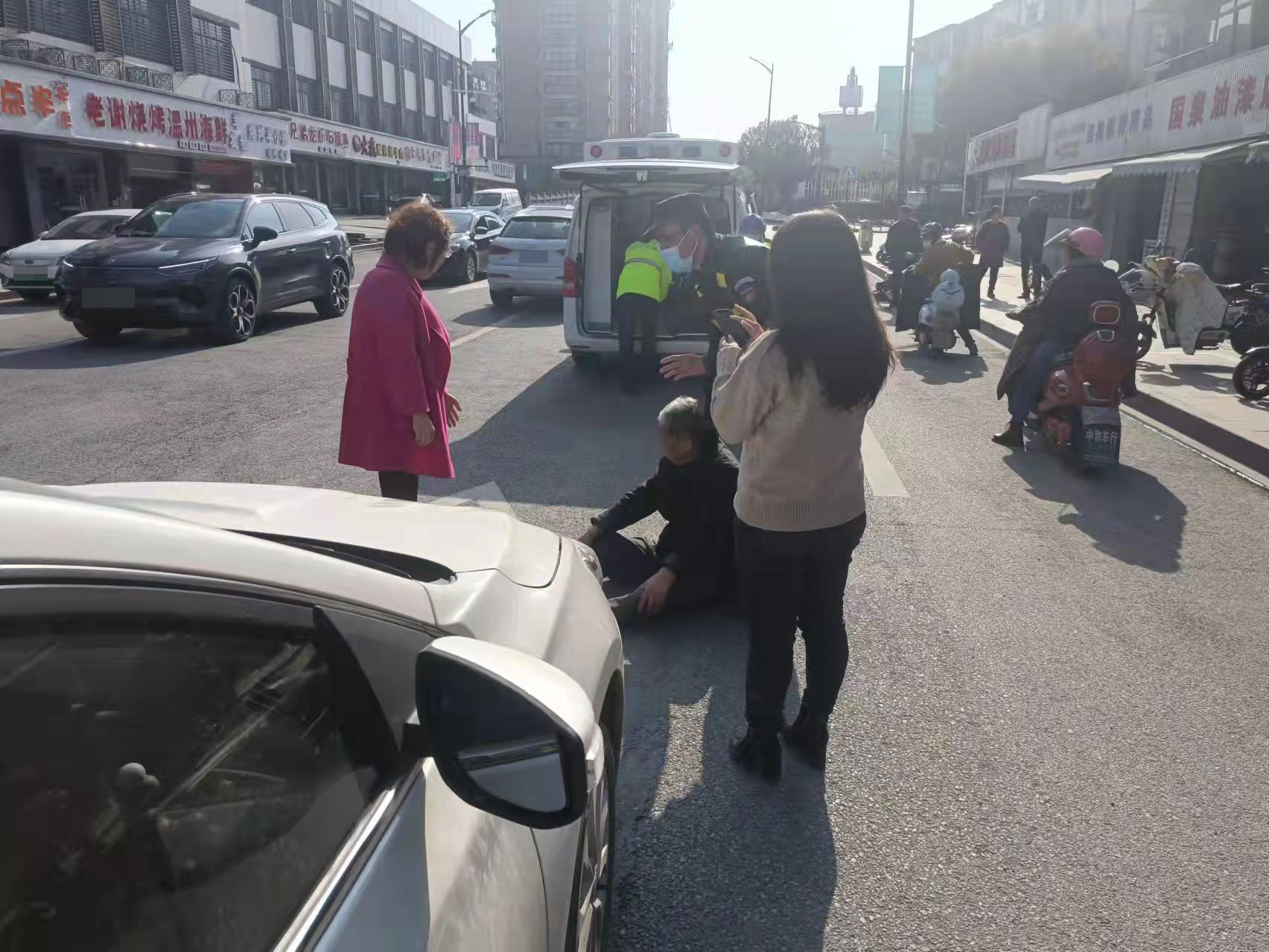 当日13:30,陈国清、武帅锋在文苑路文体中心附近巡逻时,发现前方路口发生一起交通事故,便立即上前查看,一辆白色轿车将一位老人撞倒在地,老人腿部受伤,坐在地上动弹不了。