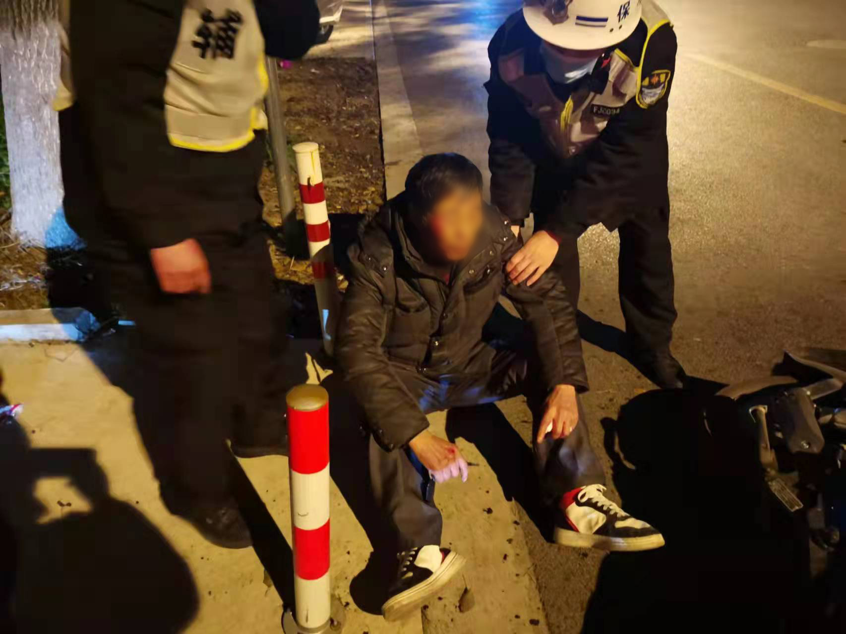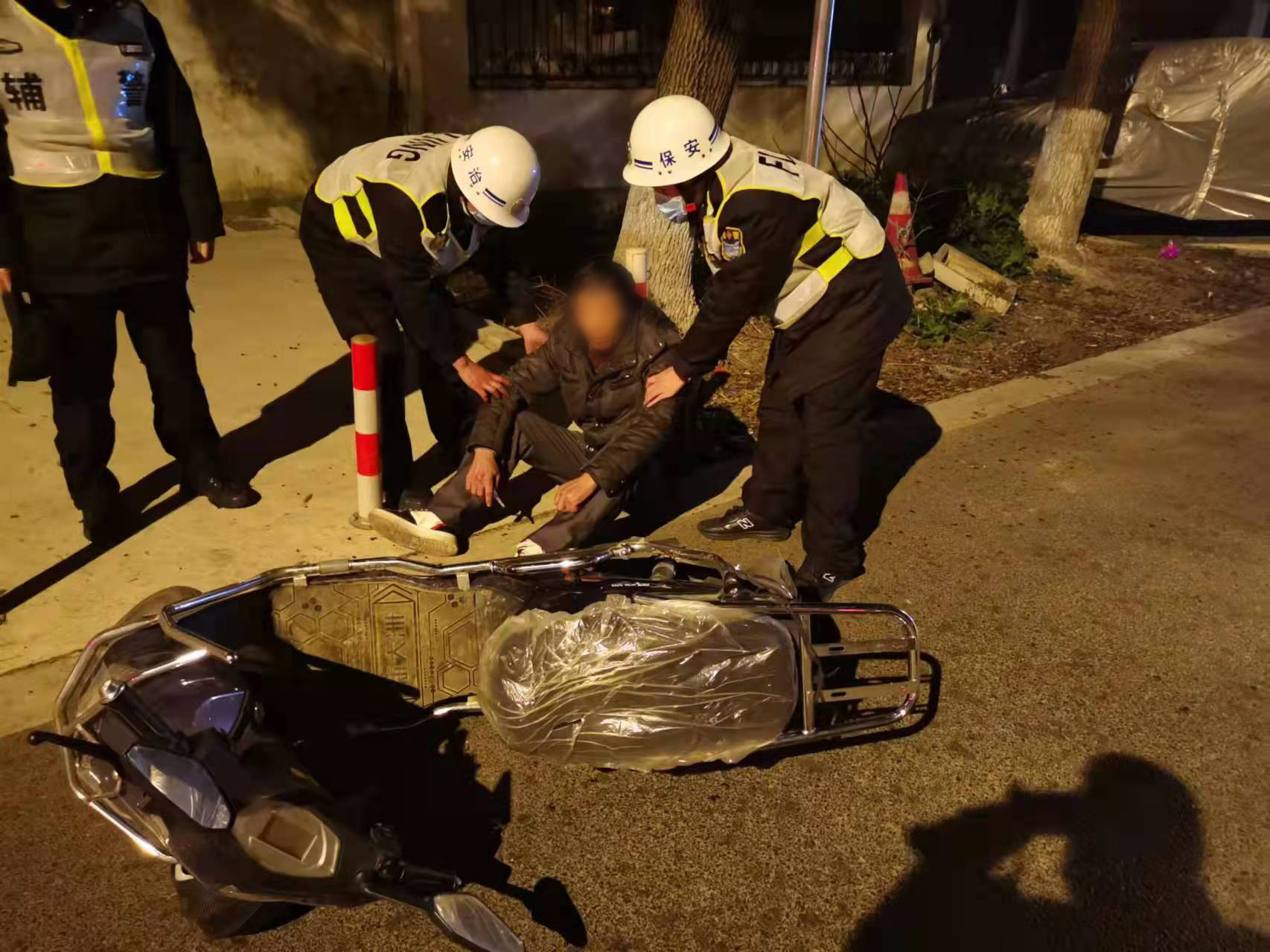 当日凌晨1点,佟超、王义、谭浪在三灶路附近巡逻时,发现一位老人骑电动车摔倒在地。三人见状立即上前将老人从地上扶起,老人脸上、手掌有多处擦伤,细心的佟超赶紧掏出纸巾帮老人擦拭,王义则立即将情况上报班组长。
