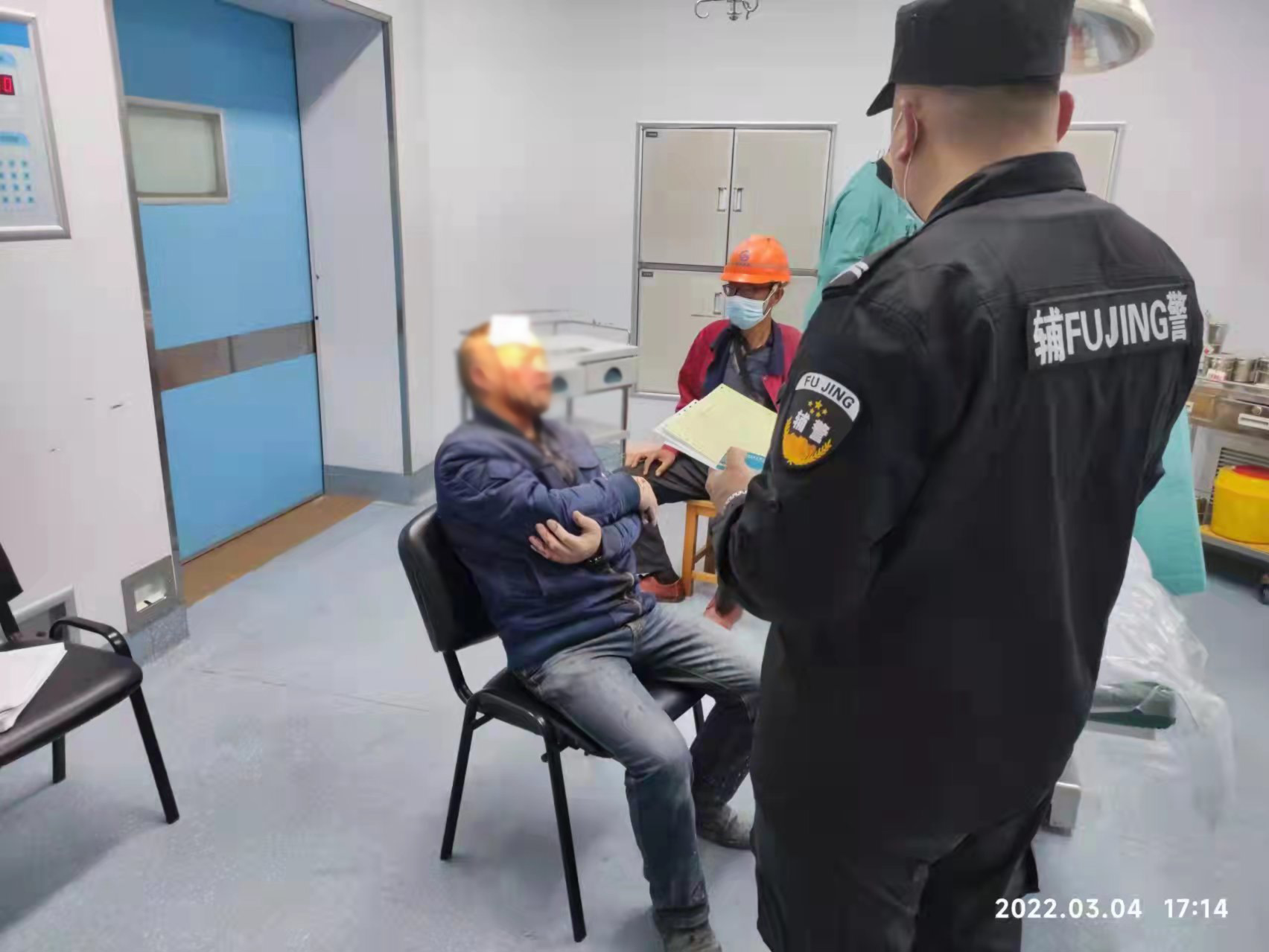 3月4日16:00,关毅亮、高向清在宿舍门口整理电瓶车时,一位满脸淌血的中年男子跑来,称自己在干活时不小心被冲击钻打伤了,询问附近是否有医院治疗。