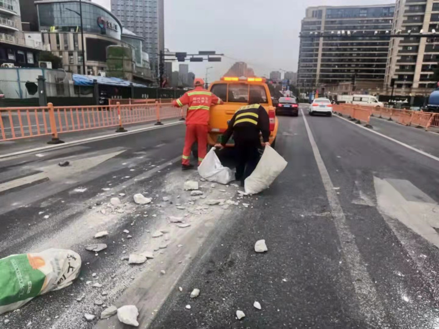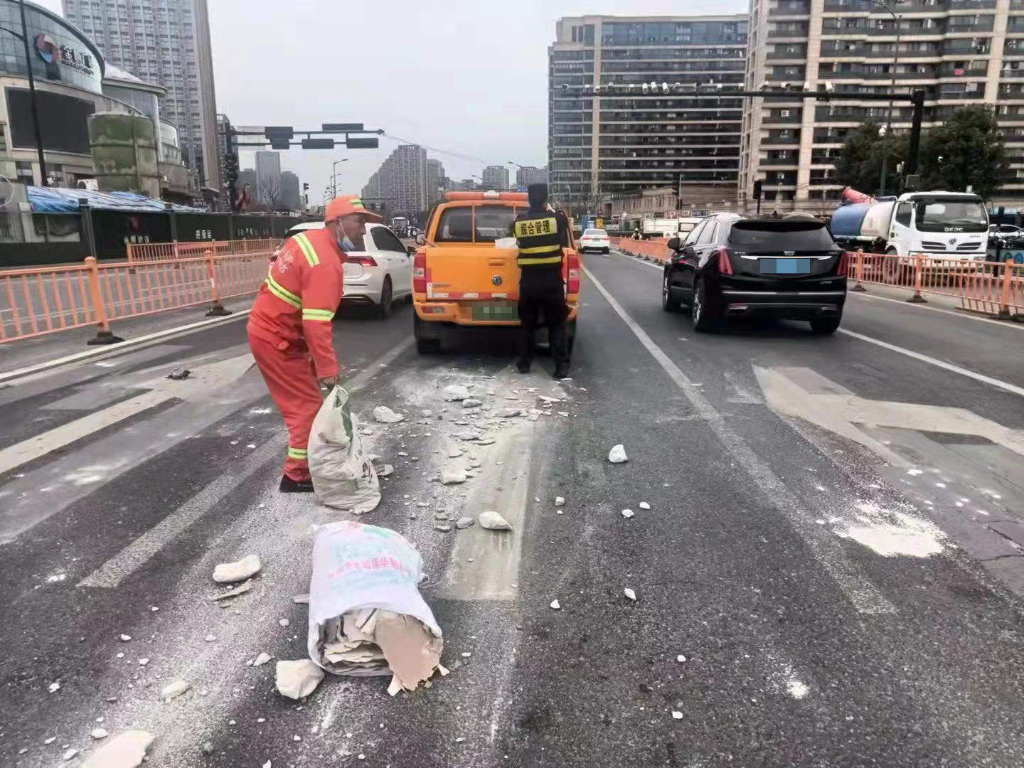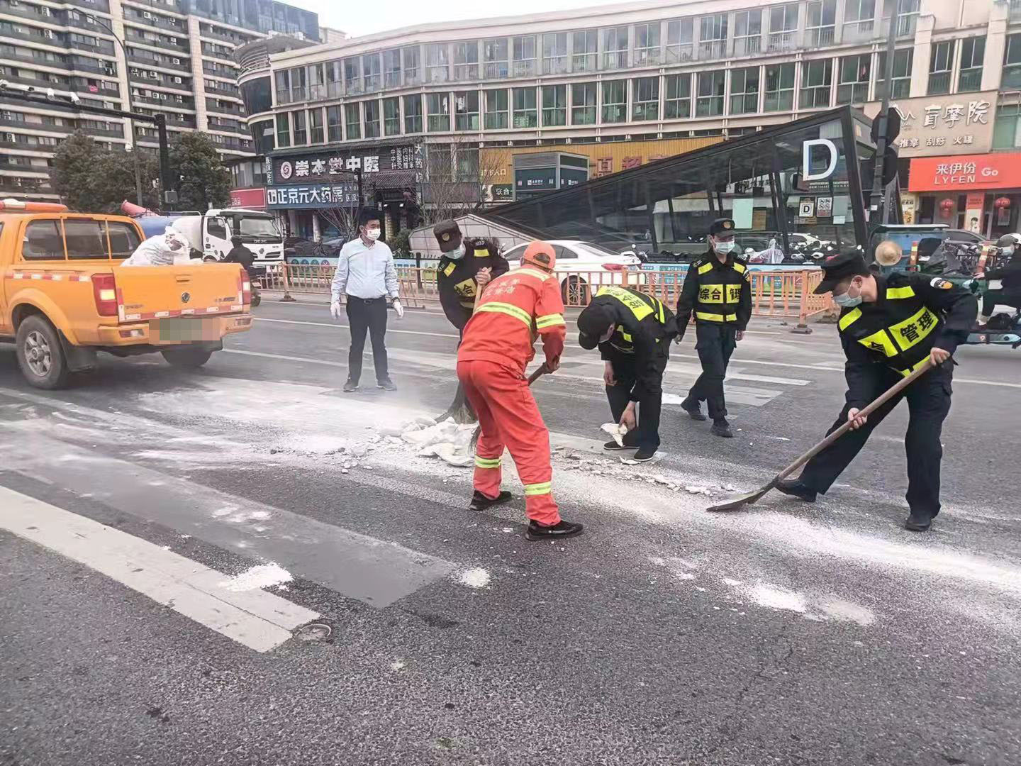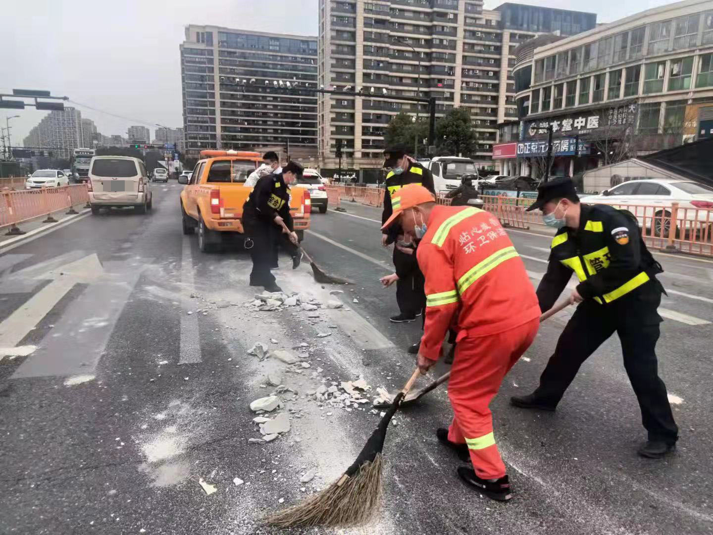 当日,杨培发、王正、张思俊、黄加武、张亚飞在金家渡地铁站C出入口巡查时,看见马路中间有一堆路过车辆掉落的建筑垃圾,过往车辆纷纷避让,存在着极大的安全隐患。