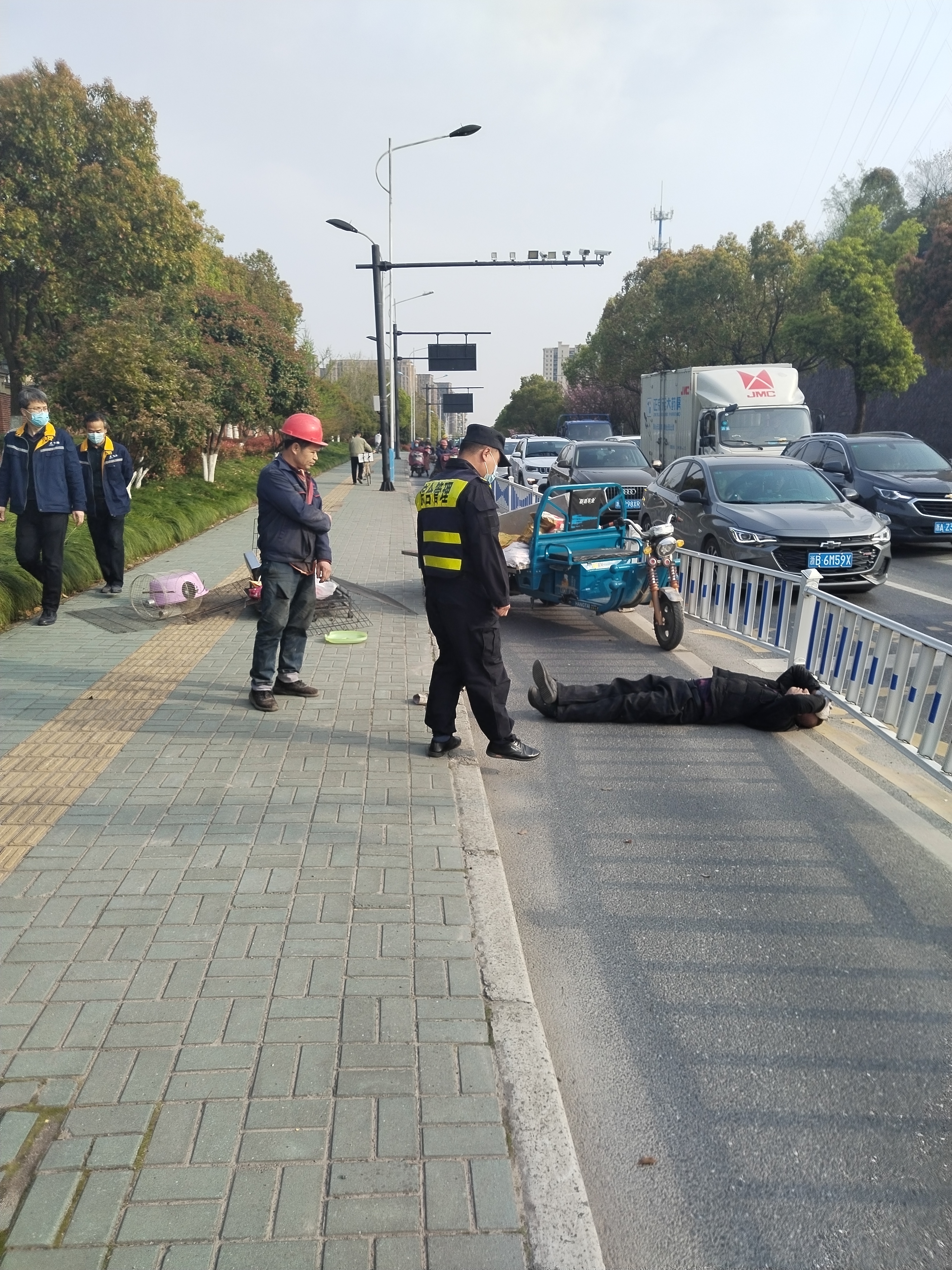 巡逻途中遇车祸 热心救助扬正能—塘栖市容项目队员热心救助车祸伤者