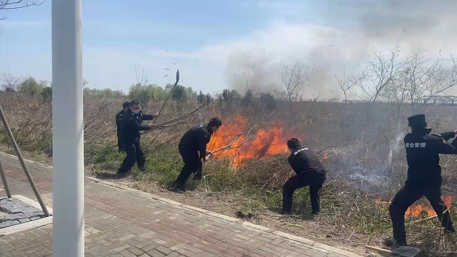 路边草地失火 队员紧急扑灭—滴水湖项目队员协助灭火