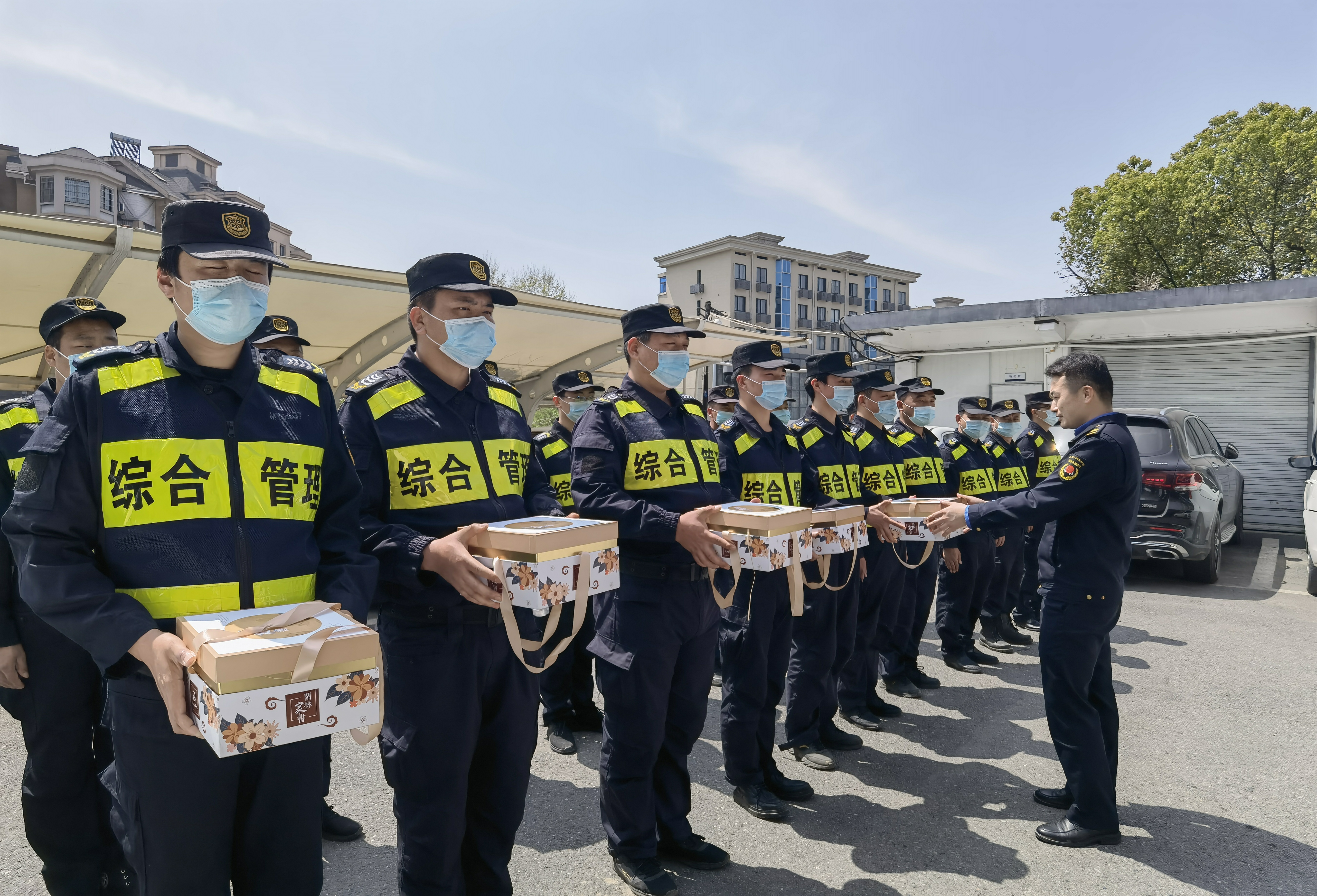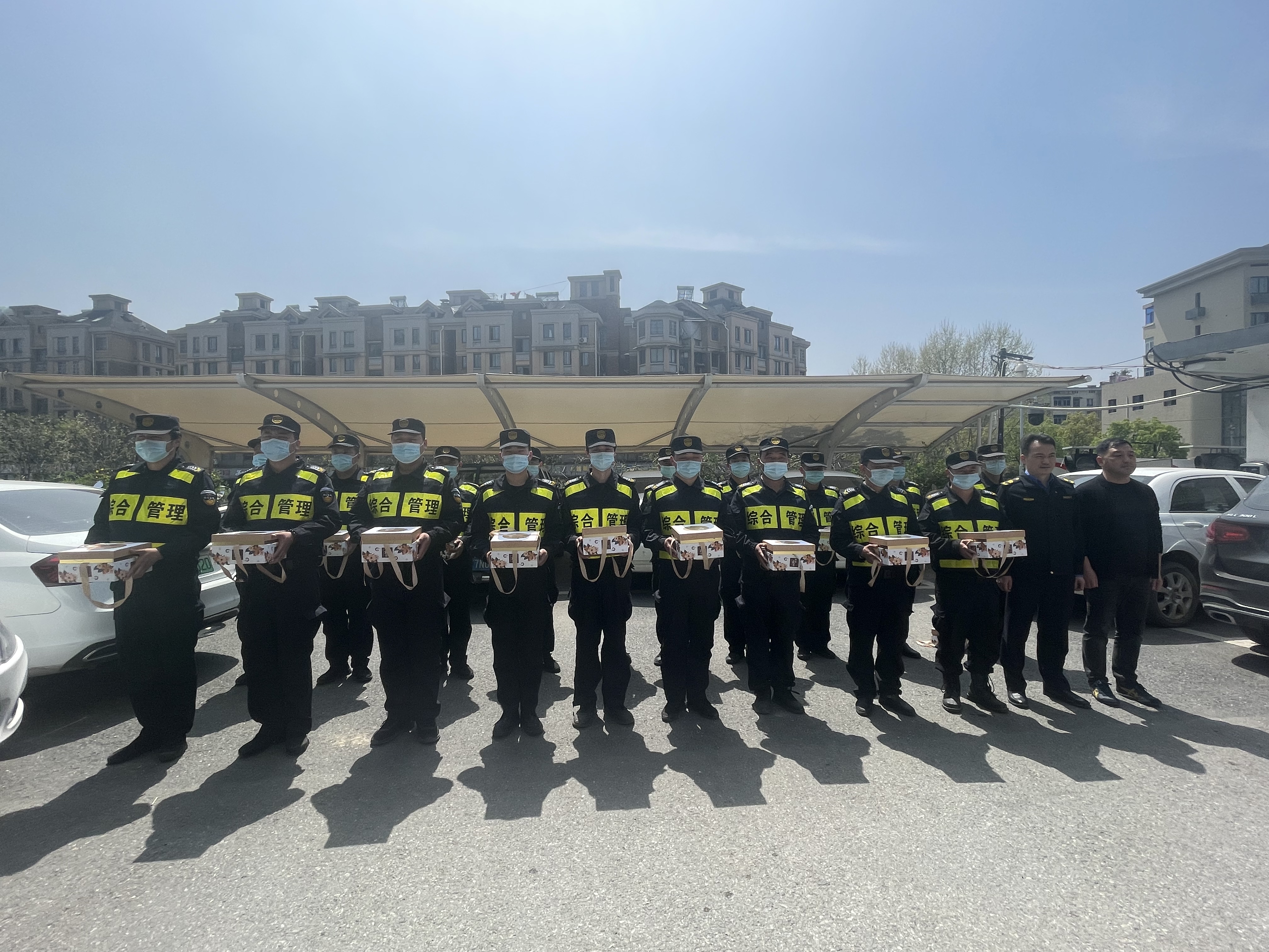 3月28日,中泰街道办事处副主任徐攀峰、城管中队中队长黄斌送来慰问品慰问民泰队员。