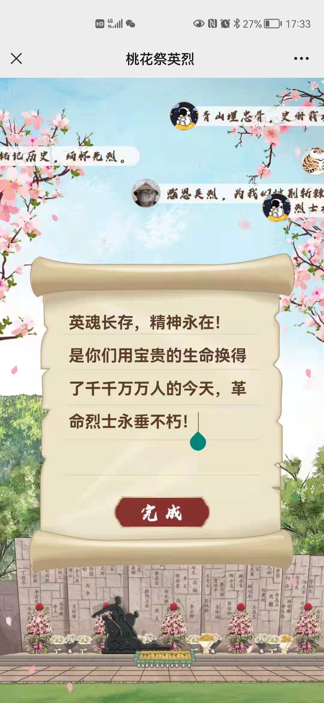 清明祭英烈,深情悼忠魂。公司党员、骨干两千余人以线上献花、发表感言寄语的形式缅怀英烈,寄托哀思,表达了对英烈的敬仰之情。