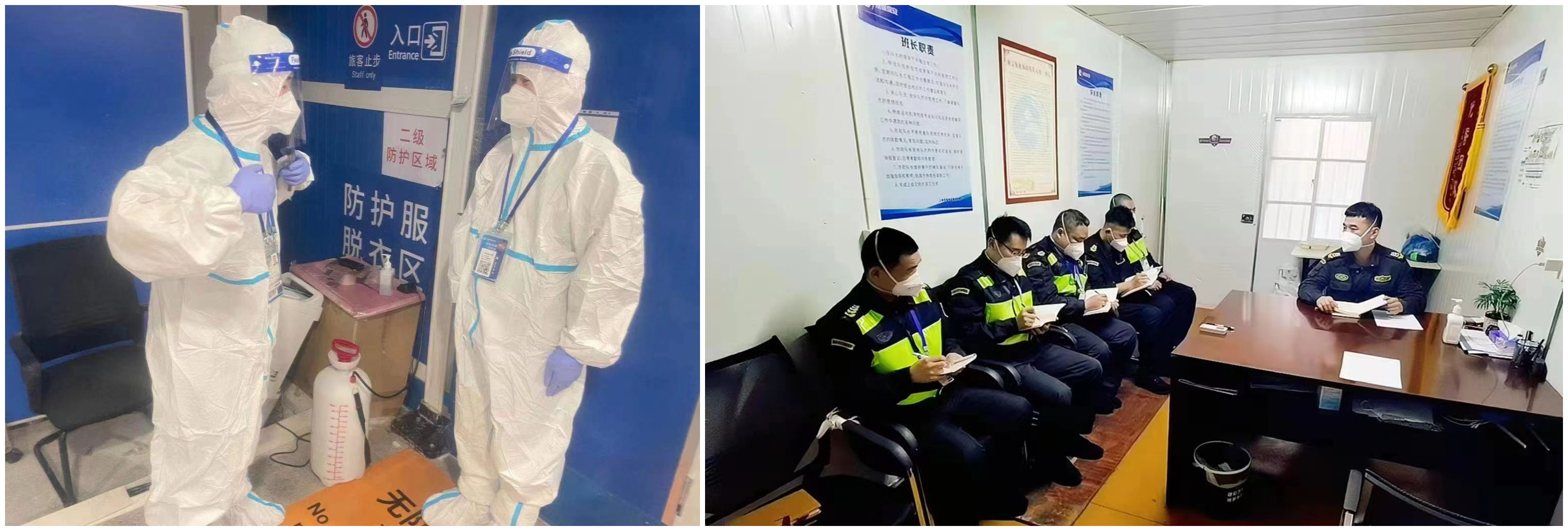 在上海疫情防控形势日益严峻的情况下,浦东国际机场口岸外防输入疫情防控的任务更加艰巨。宗保公司驻浦东机场项目员工按照机场疫情防控部门的要求,严格落实疫情防控措施规定,不惧风险、舍小家顾大家,全力配合做好入境旅客至指定宾馆入境转,值守防疫隔离区出入口、进行24小时不间断巡逻、维护好转运隔离区秩序,为入境口岸筑牢了坚实的疫情防控屏障。