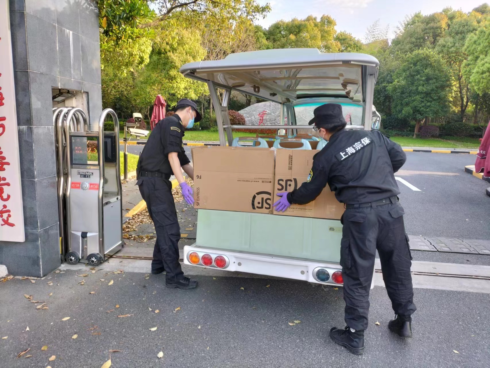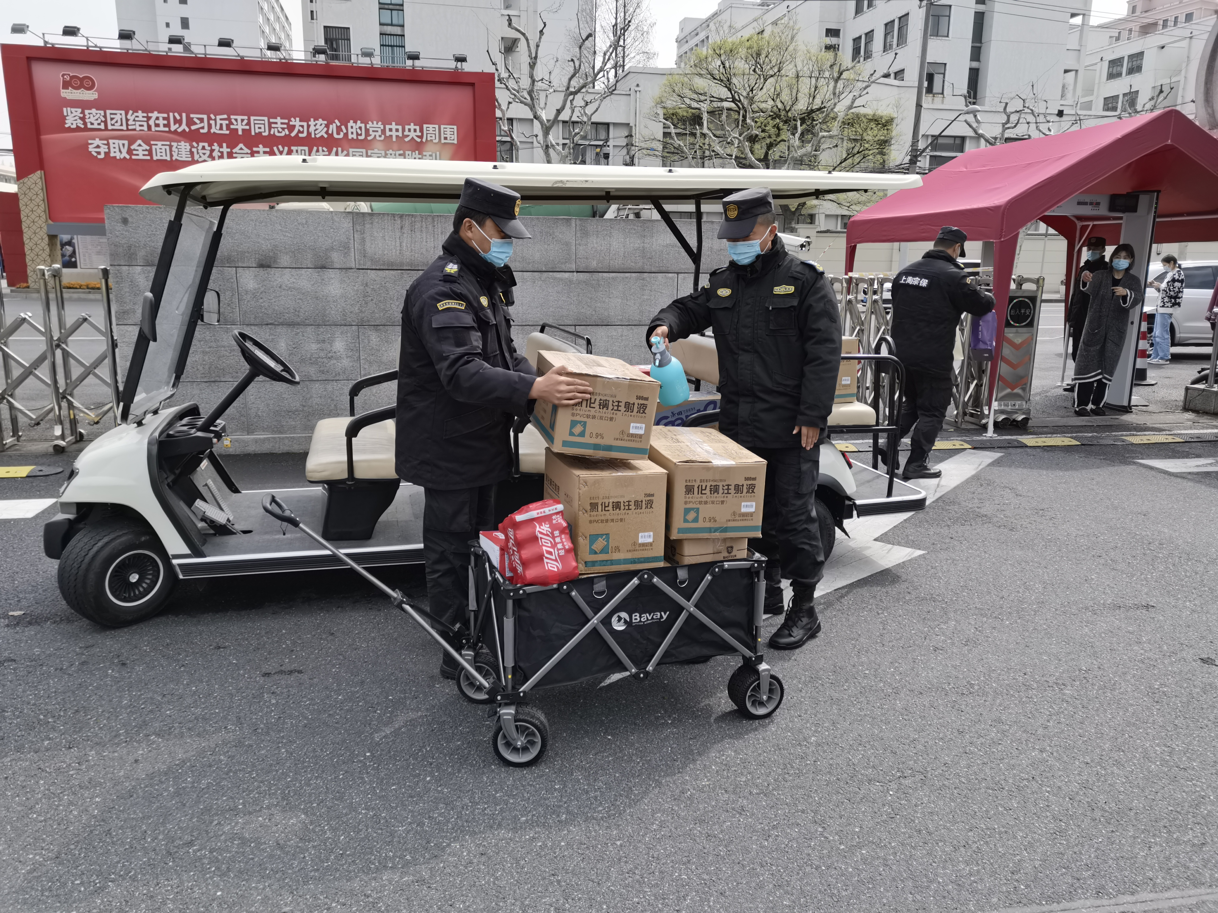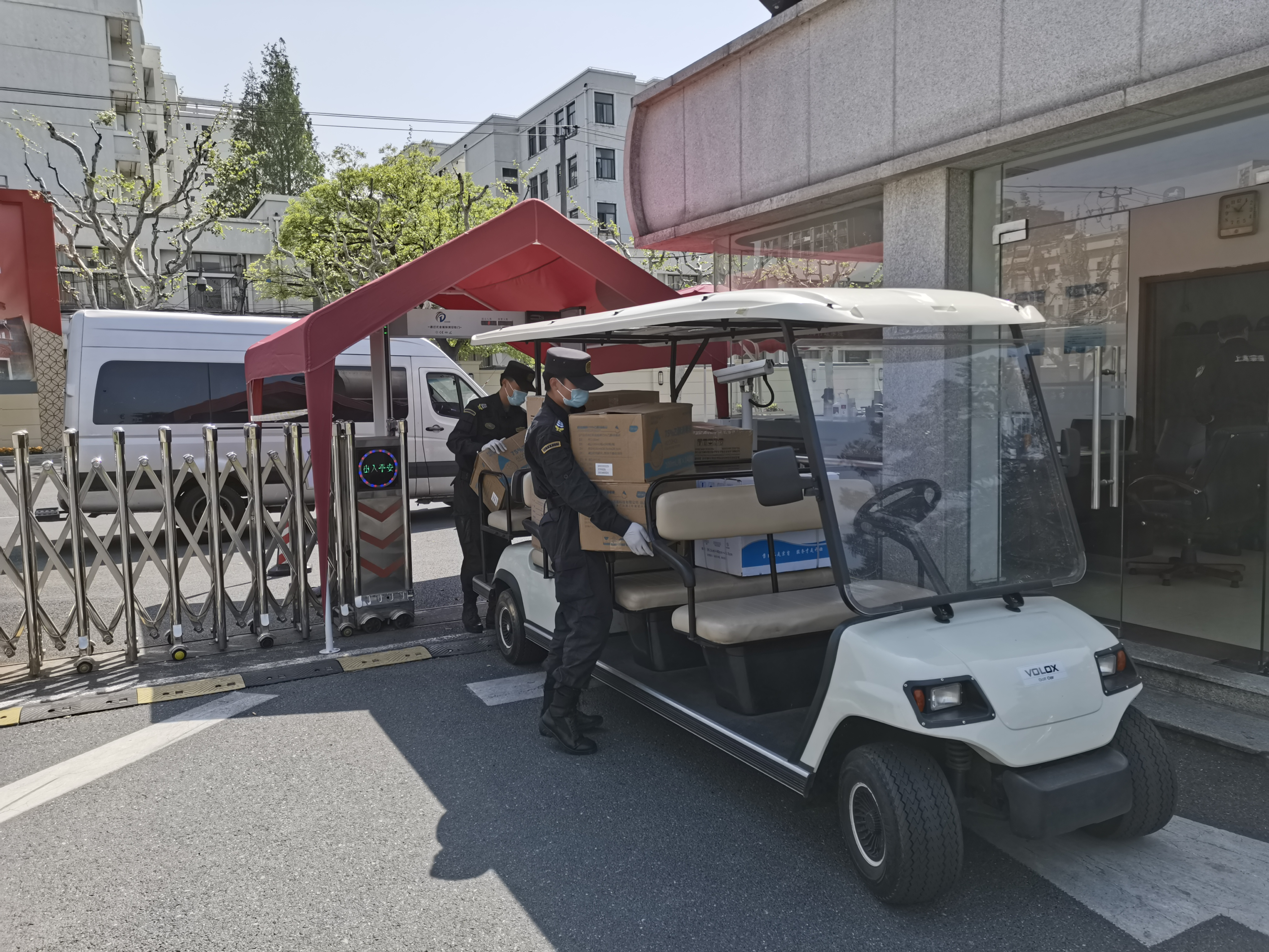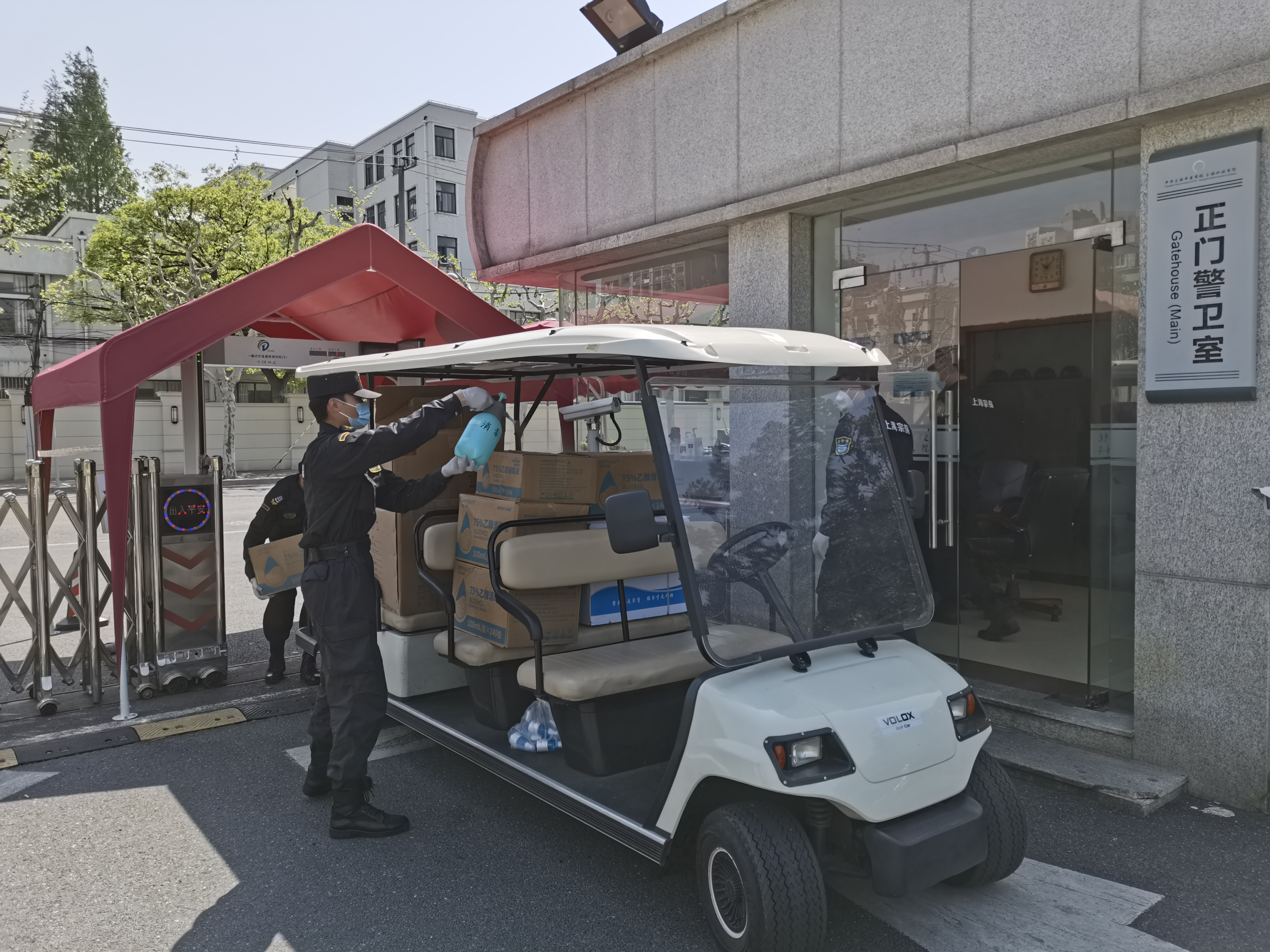 项目组员工严把疫情防控关,认真做好出入校区人员、车辆信息登记、体温测量等工作,人员、车辆未经允许一律不准进入校区;帮助医务人员转送快递、物品,搬运医疗物品、慰问物资;设置货物缓冲区,进行防疫消杀,并根据学校实际,实行24小时不间断的校内巡逻和值班值勤制度,及时排查安全隐患,确保校园安全。