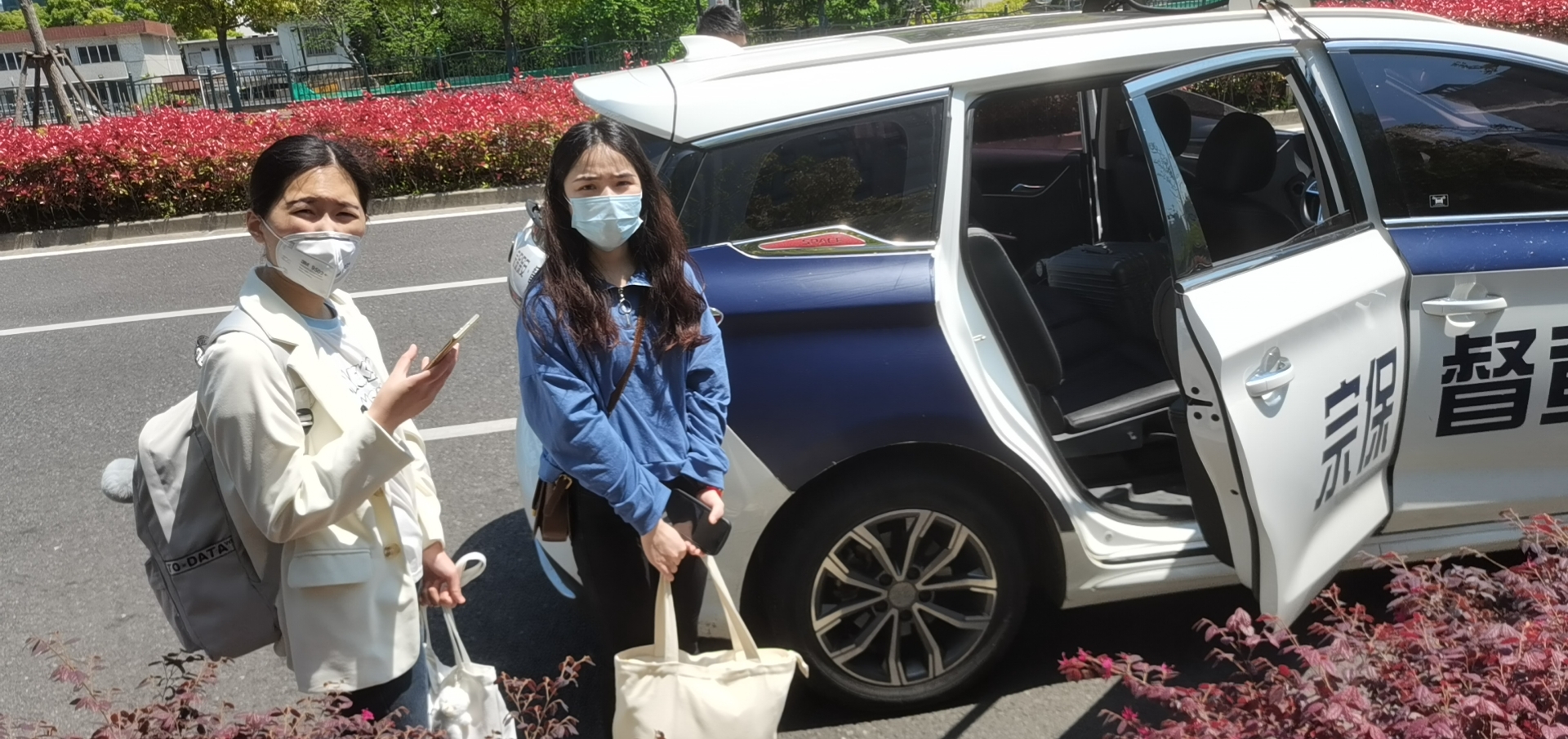 4月16日,宗保公司督察队员吴寒准时将两名医护人员送到源深路方舱医院开展防疫工作。