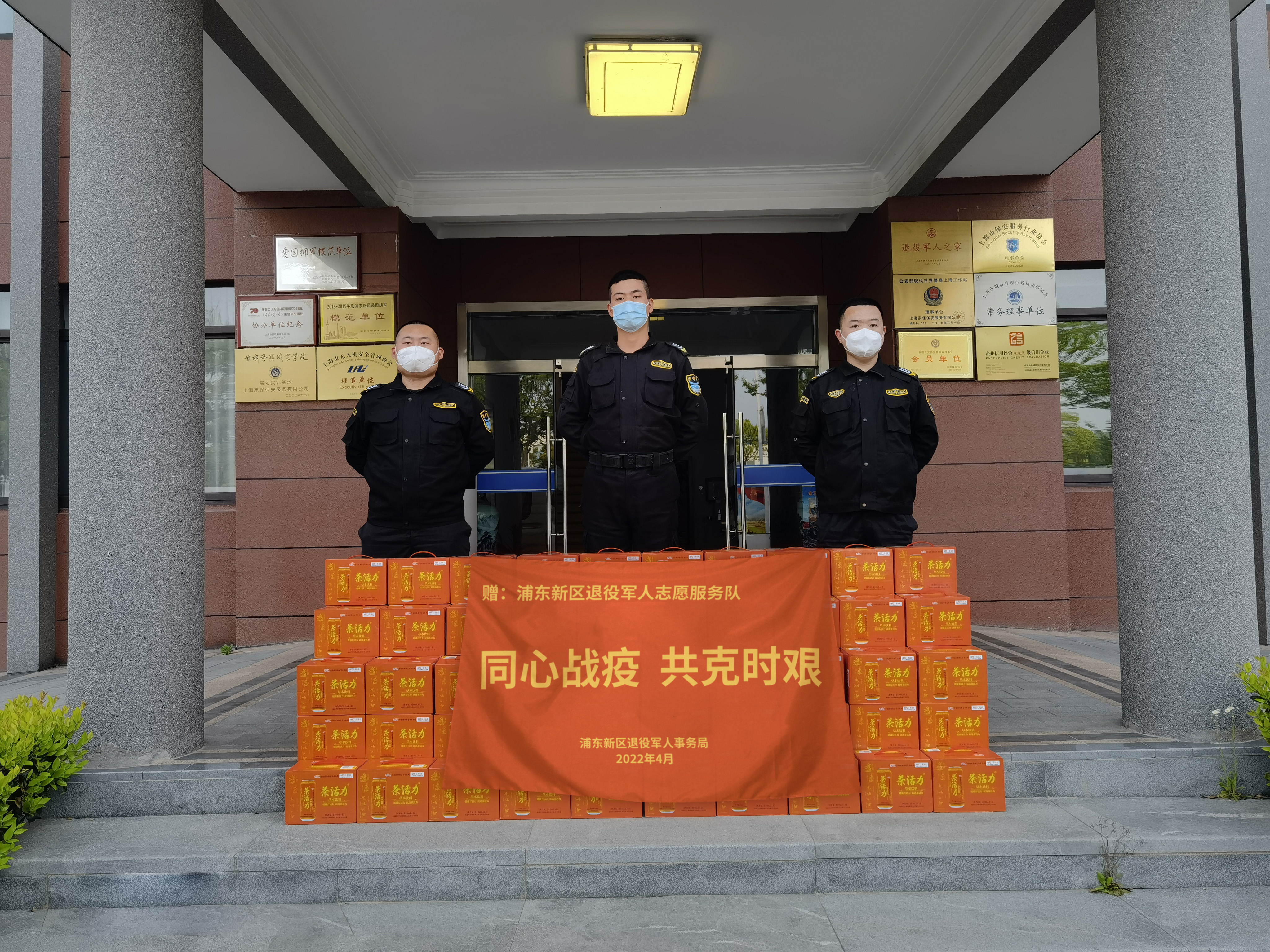 浦东新区退役军人事务局向宗保公司捐赠2000套防护服,并送来100箱饮料慰问宗保公司退役军人抗疫志愿者。