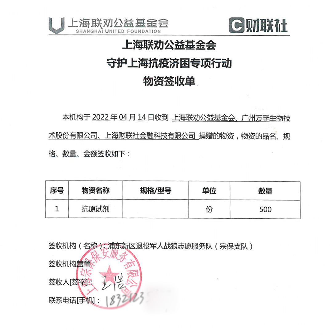 上海战亿科技有限公司通过上海市拥军优属基金会浦东新区工作委员会向宗保公司捐赠10000个防疫口罩。