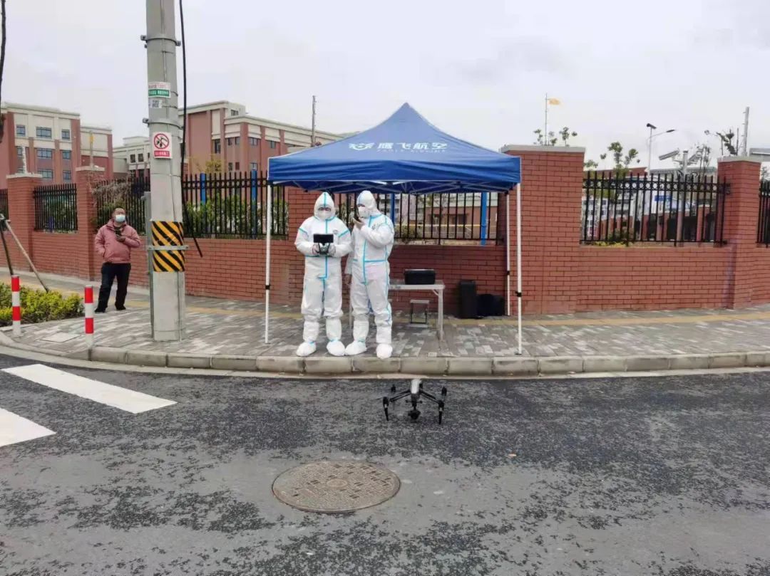 无人机航队构筑空中防疫屏障,进行秩序维护、数据采集、视频传输。