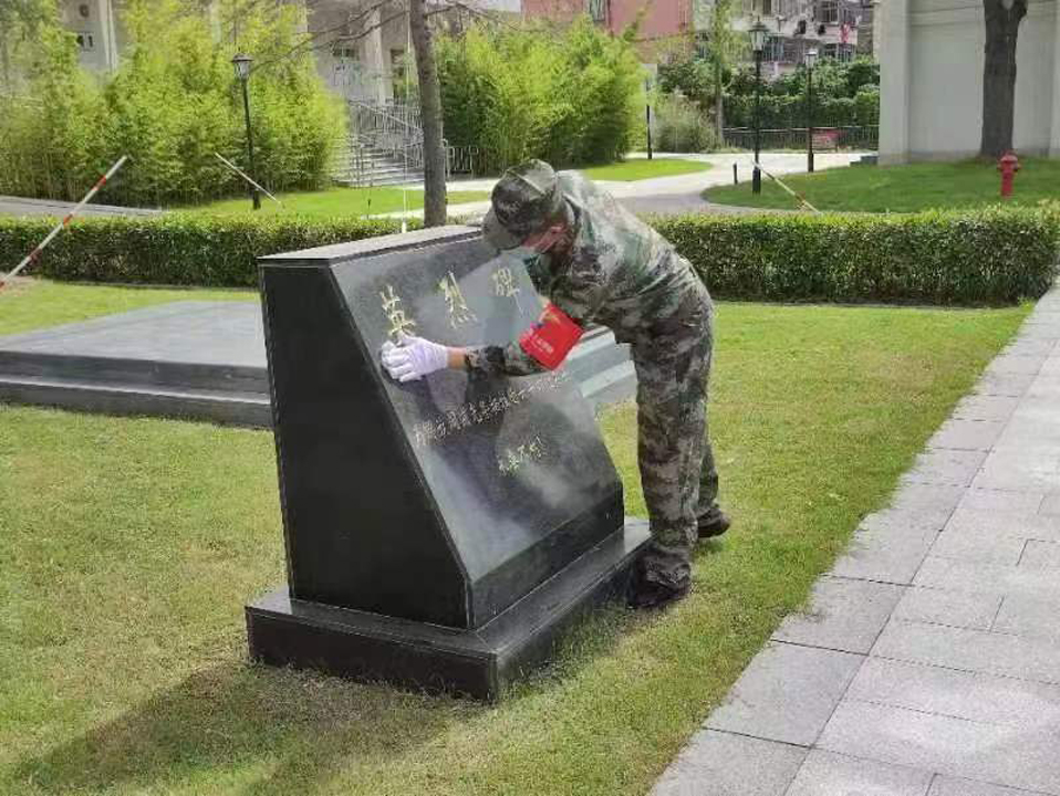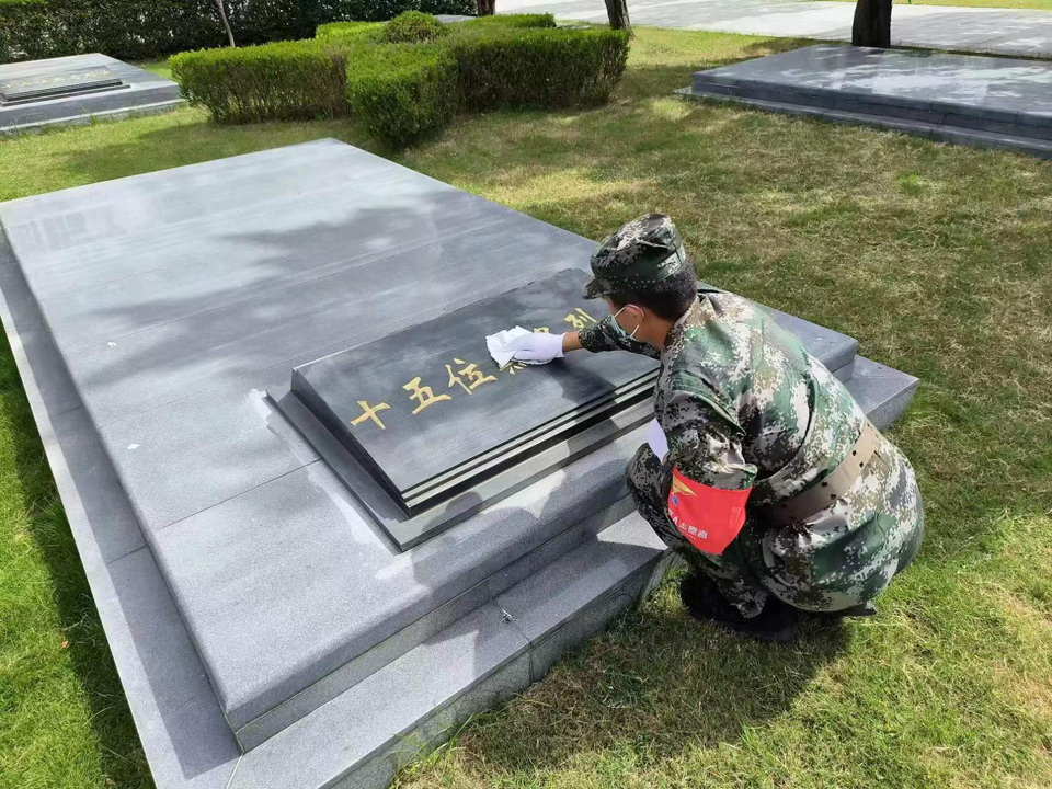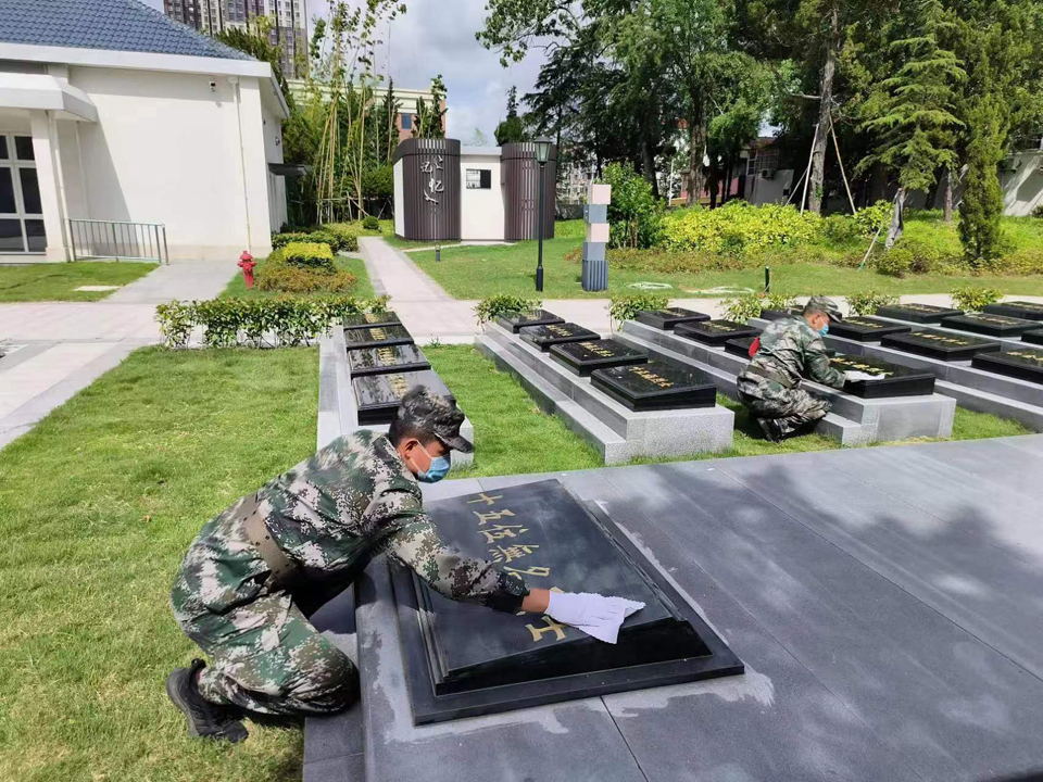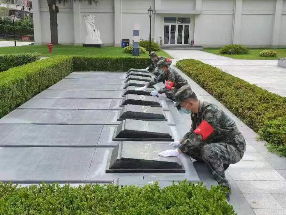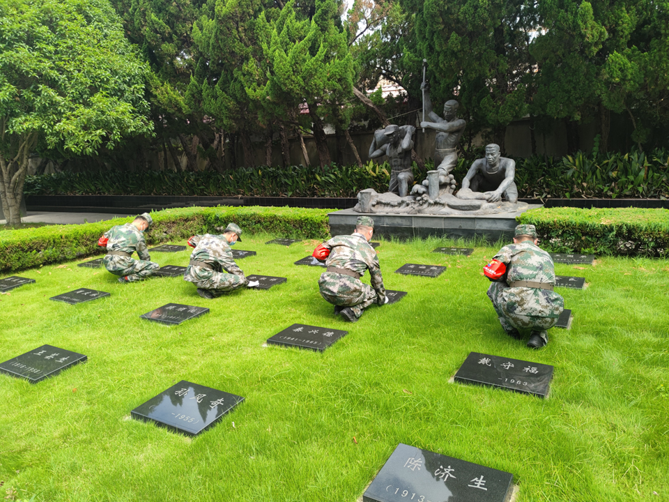 7月1日上午,上海烈士纪念设施守护崇敬志愿服务队浦东区队志愿者来到川沙、南汇烈士陵园,集合在纪念碑前,神情凝重,庄重肃穆,向纪念碑深深三鞠躬,深切表达对烈士英雄的无限缅怀。随后,大家戴上手套,拿着毛巾,怀着无比崇敬的心情,来到一座座墓前,擦拭着一块块墓碑,清理着墓边杂草;阅读着一句句碑文,瞻仰着烈士事迹。他们守护着烈士设施,祭奠着烈士英灵,把缅怀英烈、崇尚英雄,转化为自己的实际行动。