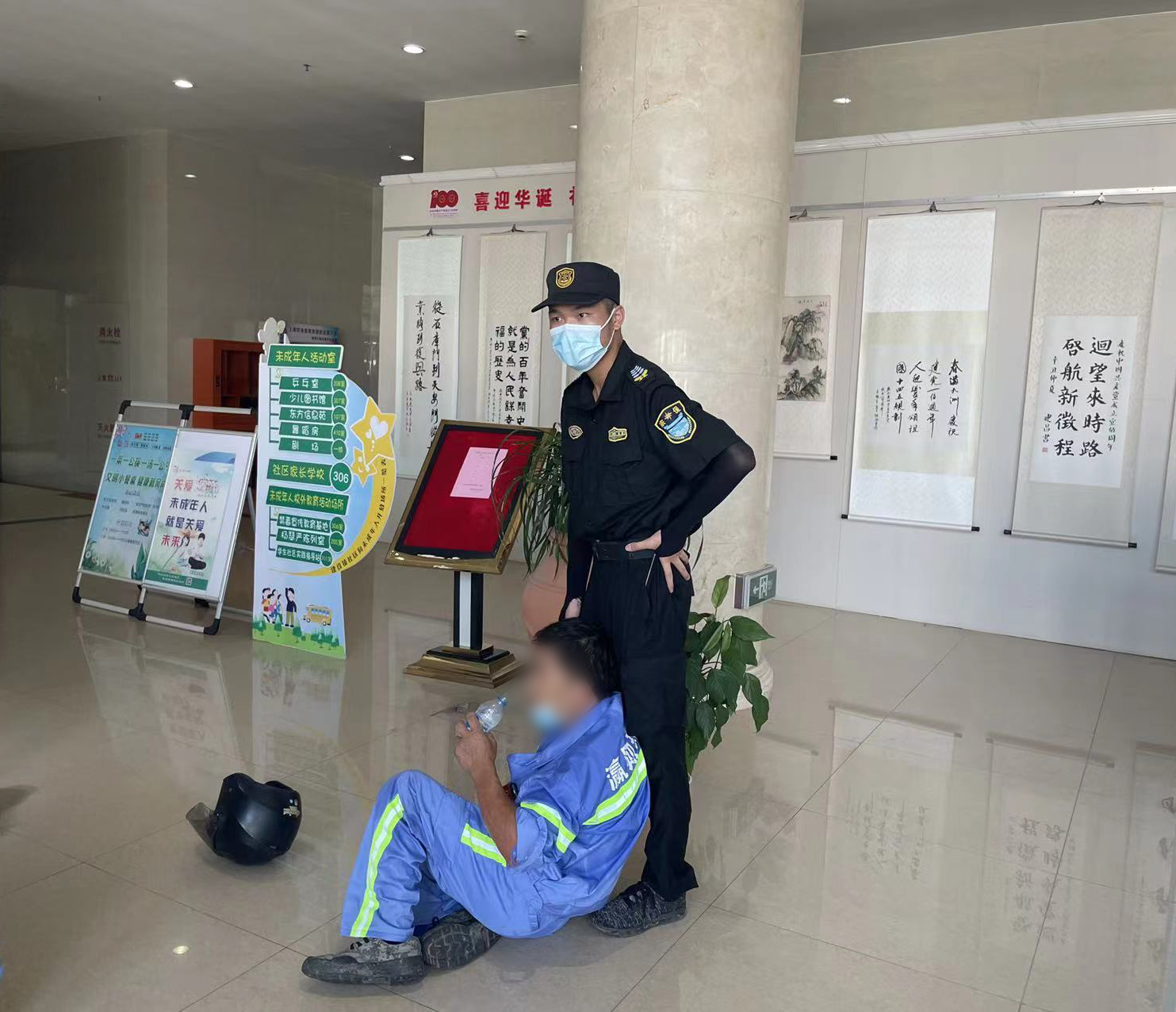 7月12日8:30,公司驻崇明区建设镇项目员工韩永坤在建设镇文化活动中心核酸采样点保障时,发现一位身穿蓝色环卫衣的老人瘫坐在地,脸色苍白,衣服湿透,疑似中暑。韩永坤搀扶老人,递服仁丹和矿泉水,并联系其家人送往医院治疗。