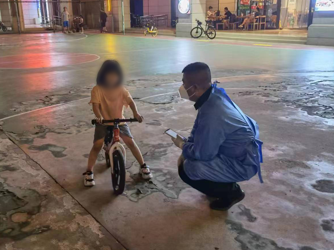 7月12日19:00,公司驻周浦市容项目员工秦亮在海印哈邻里核酸采样点,见到一个约5岁左右、与家人走散的女童,主动向民警反映,联系其父母安全回家。