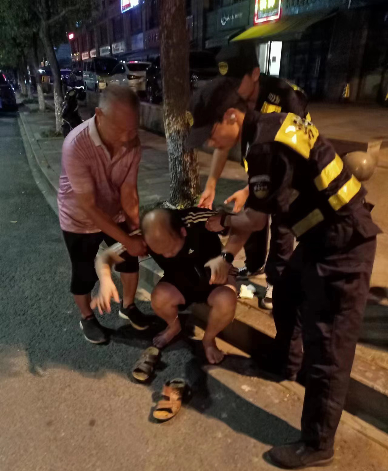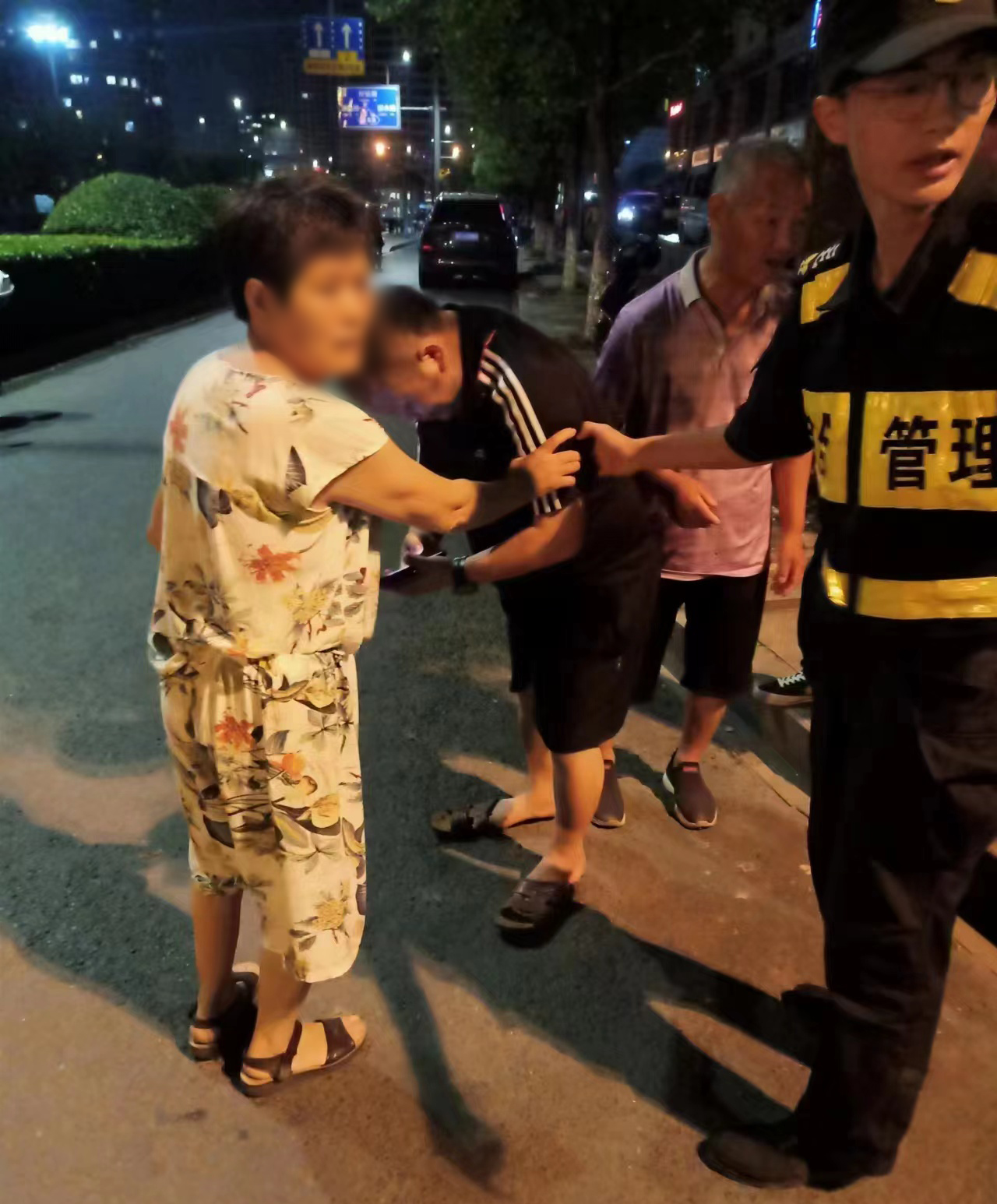 当日22:36,张奇、苏建程和江伟峰在昌运里通运街与儲运路交叉口附近巡逻时,发现一名中年男子躺倒在路边,便随即上前察看。