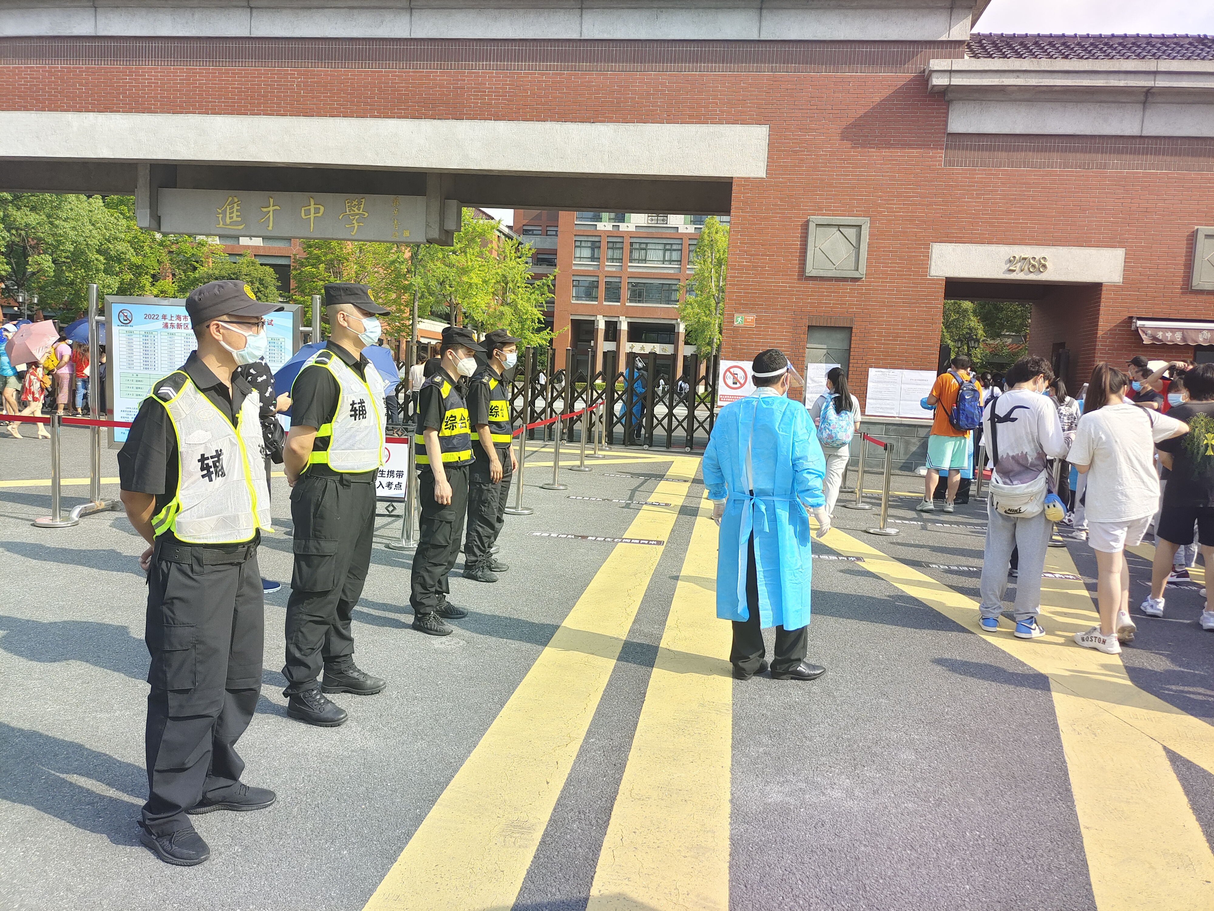7月7日起,上海市陆续迎来了2022年普通高校招生全国统一考试和2022年初中学业水平考试。宗保公司承担了建平中学、进才中学、周浦中学、吴迅中学、沪东长岛中学、杨思高级中学、南汇一中、南汇中学、闵行外国语中学等17个考点的秩序维护任务,配合辖区公安机关、校方维持各考点高考和中考秩序。
