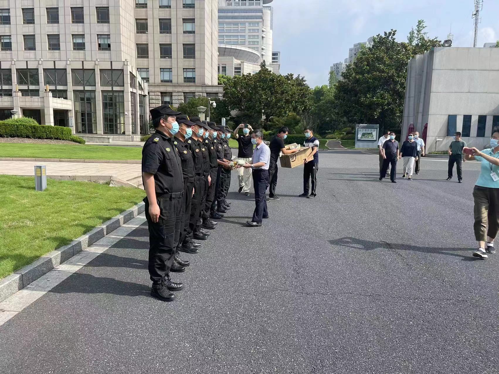 李渤副校长一行来到宗保公司员工工作岗位进行亲切慰问,为他们送上洗发水等防暑降温用品,表达市委党校对安保人员的关心和问候,感谢大家为维护党校秩序所付出的辛勤劳动,叮嘱大家做好疫情防护,安排好休息,照顾好身体。
