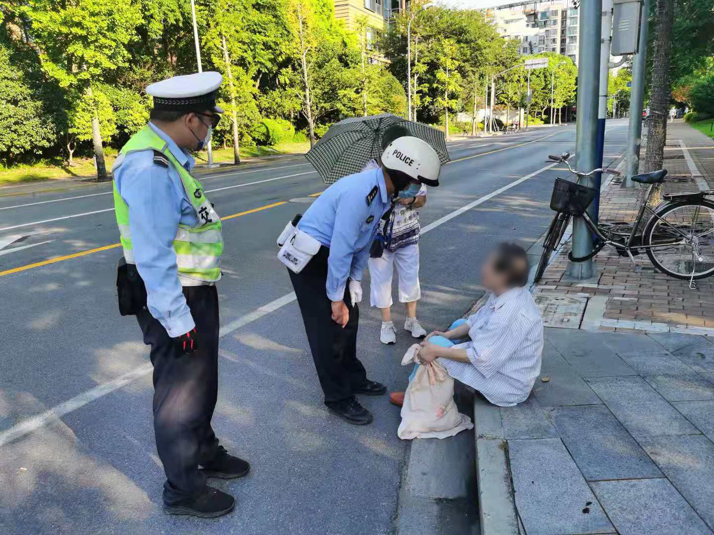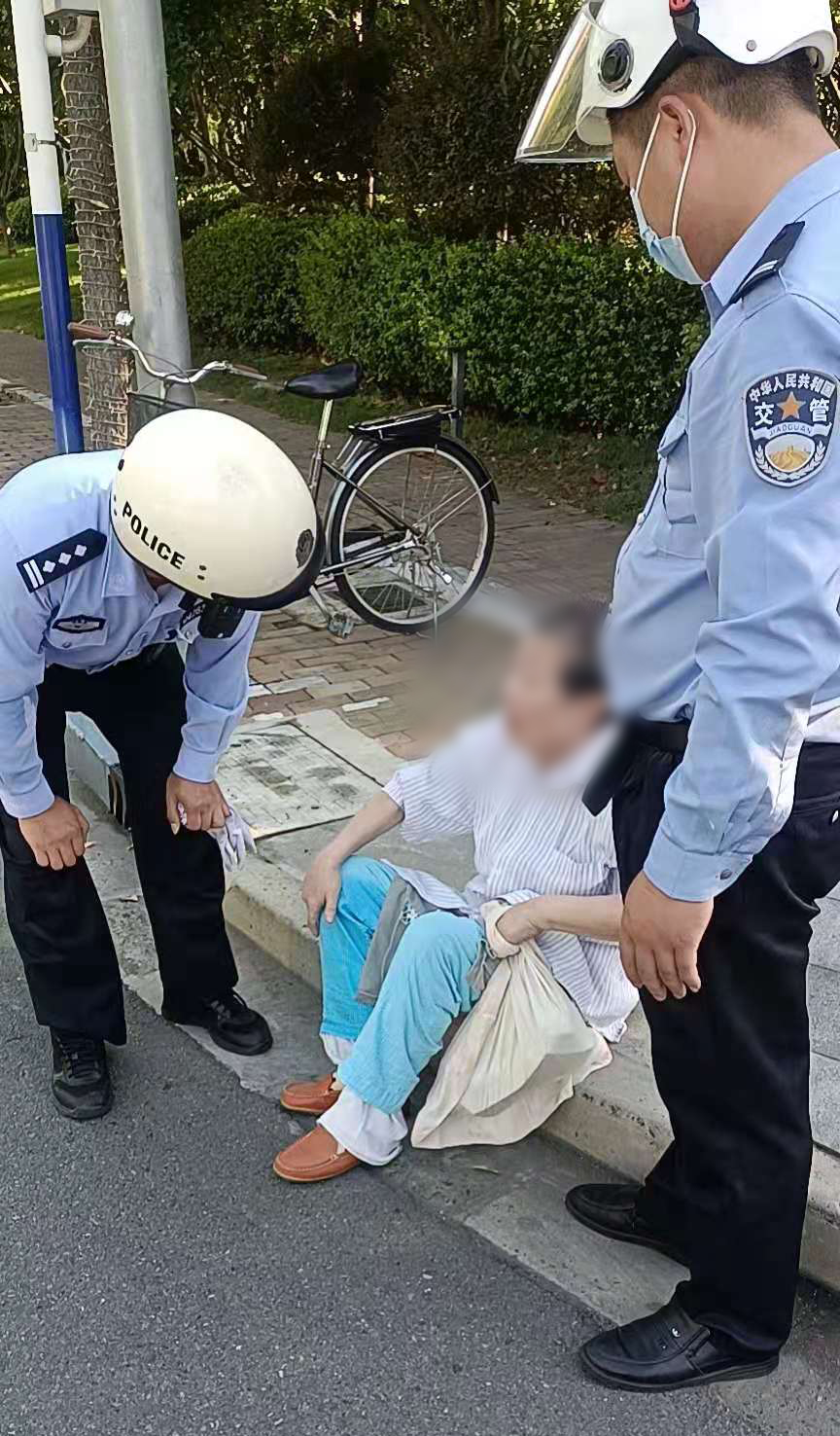 当日7:10,汪俊连在吴中柏樟附近值勤时,发现一位老人摔倒在马路上。老人用手撑着地,自己想站起来,但试了几试都没有成功。汪俊连见状,赶紧跑上前将老人从地上扶起,搀坐到路边。