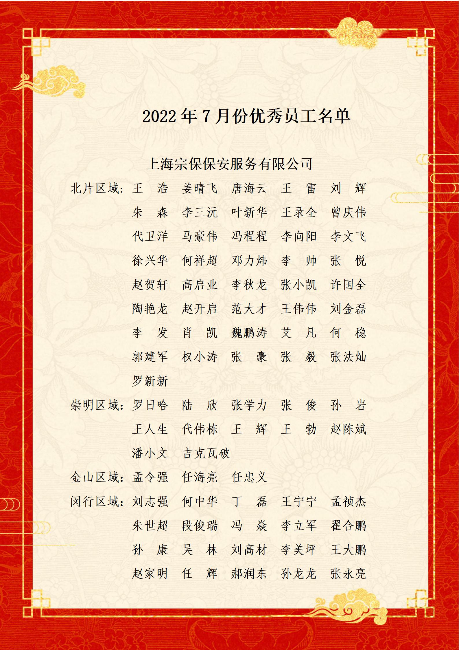 7月份,公司广大员工根据甲方的任务部署,按照公司的工作要求,不惧风险、勇毅前行,顶着高温、冒着酷暑,全力配合甲方持续做好疫情防控工作,协助完成相关高考中考考点秩序维护,助力开展好城市管理、夏季治安值守巡逻等工作。期间,涌现出了一批尽心履责、岗位建功、拾金不昧、助人为乐的优秀员工和先进典型。